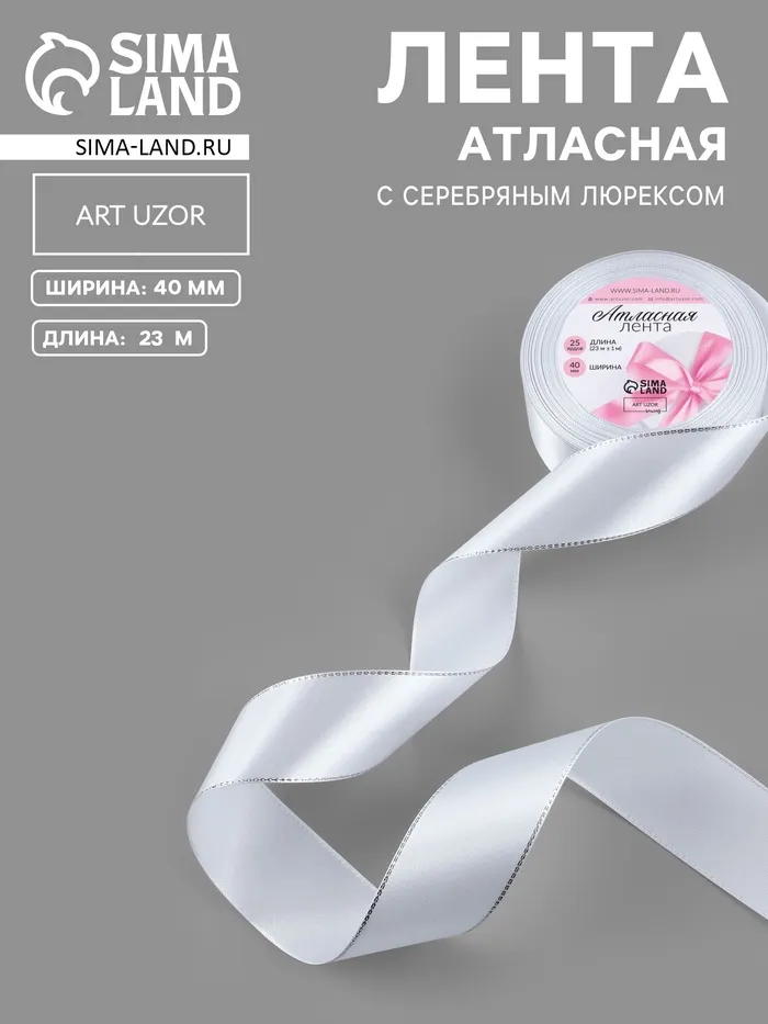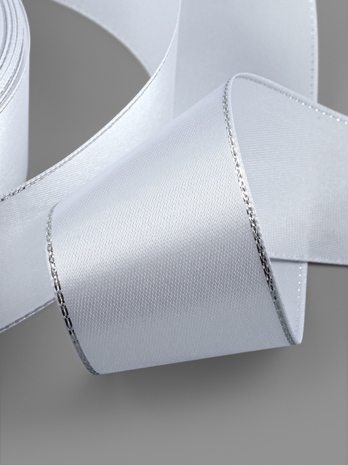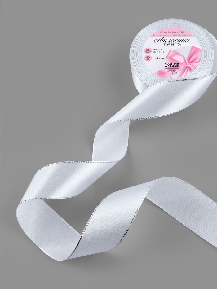 Лента атласная, с серебряным люрексом, 40 мм, 23±1 м, белая №01 — Характеристики