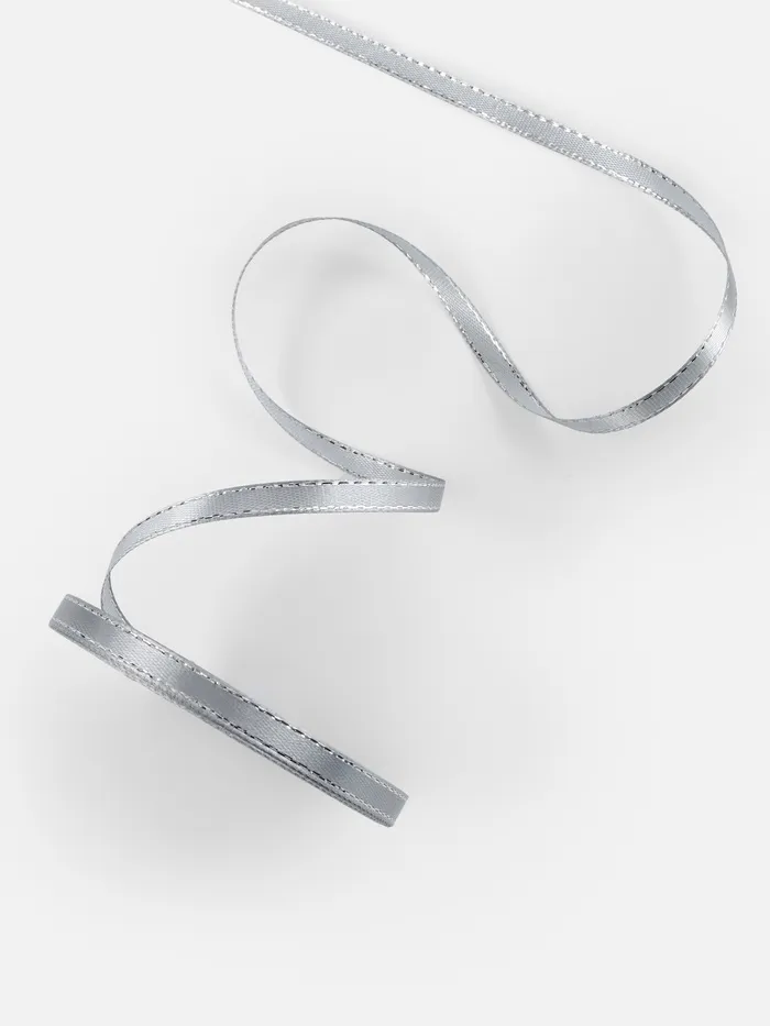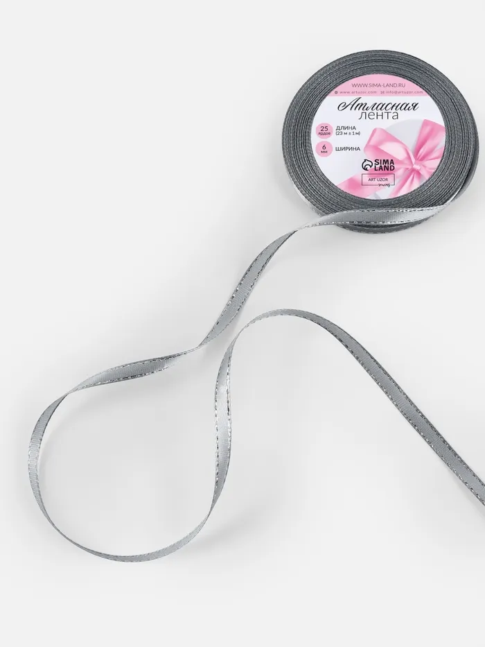 Лента атласная, с серебряным люрексом, 6 мм, 23±1 м, серая №59 — Характеристики