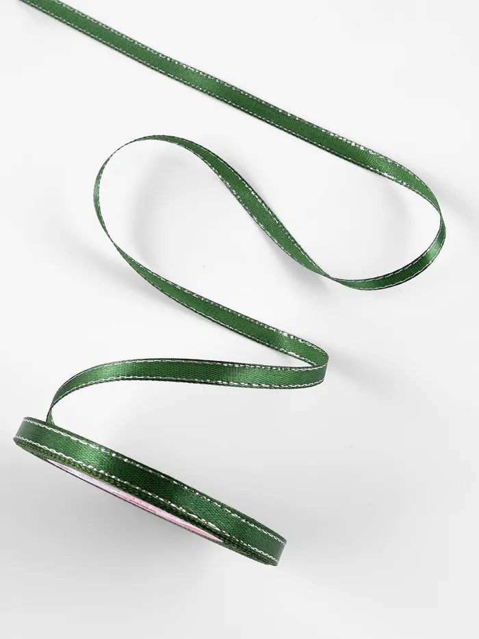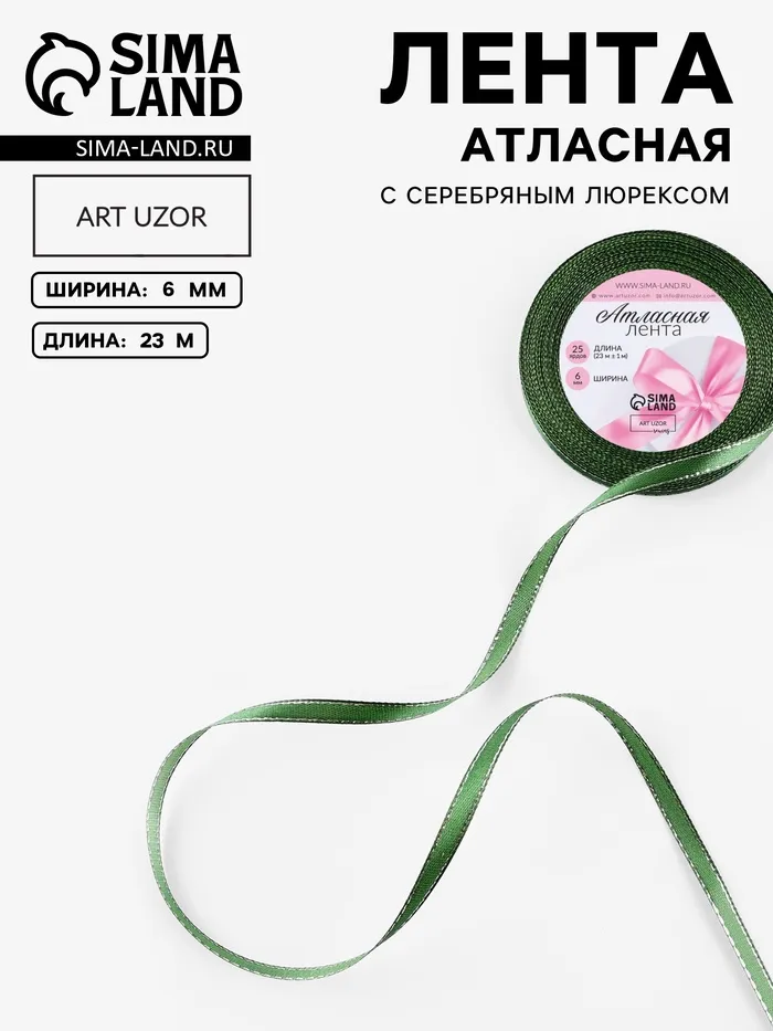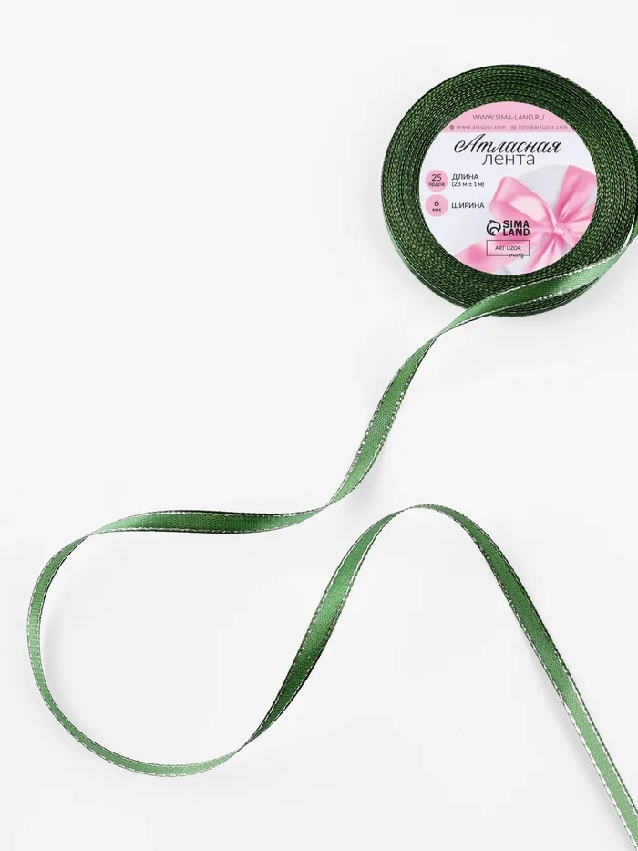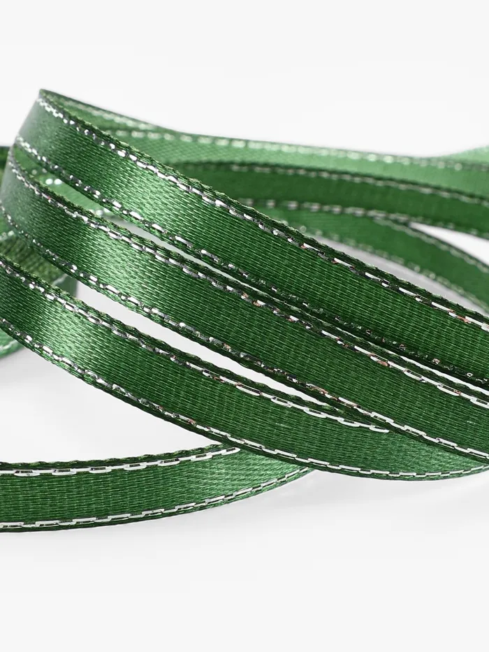 Лента атласная, с серебряным люрексом, 6 мм, 23±1 м, зелёная №049 — Характеристики