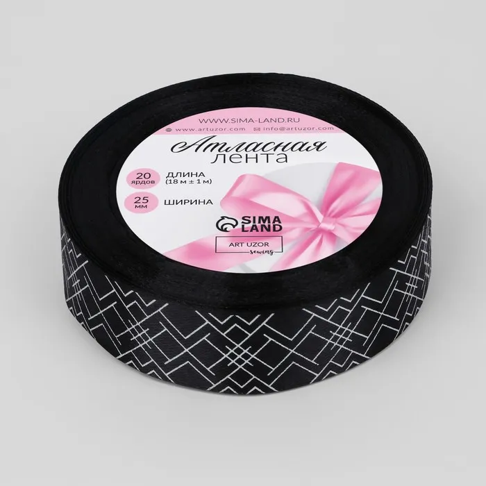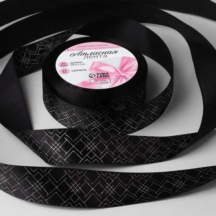 Лента атласная с тиснением «Геометрия», 25 мм, 18±1 м, чёрная, серебряная №039 — Характеристики