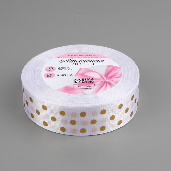 Лента атласная с тиснением «Горох», 25 мм, 23±1 м, белая №01 — Характеристики