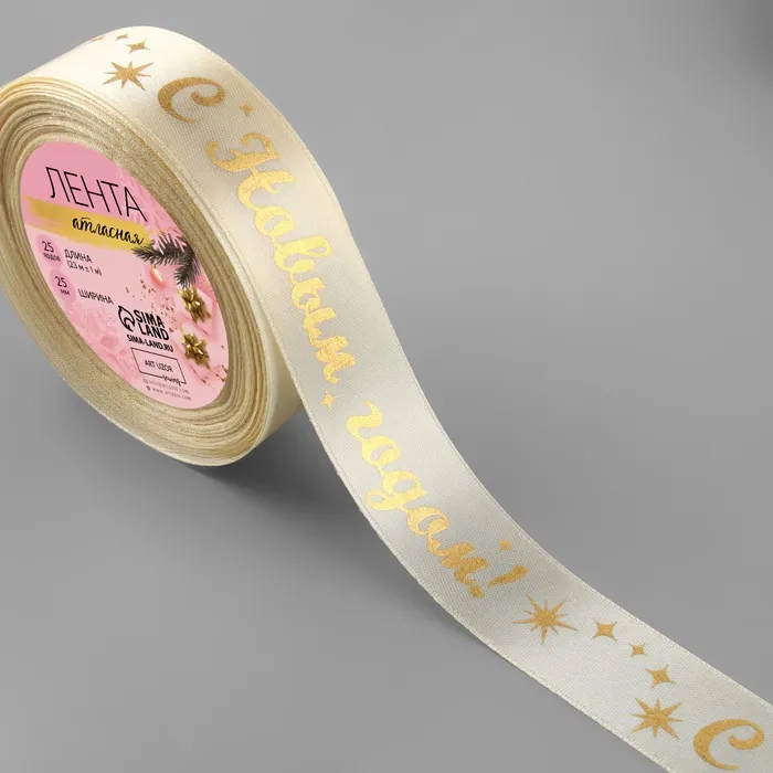 Лента атласная с тиснением «С Новым годом!», 25 мм, 23±1 м, бежевый — Характеристики