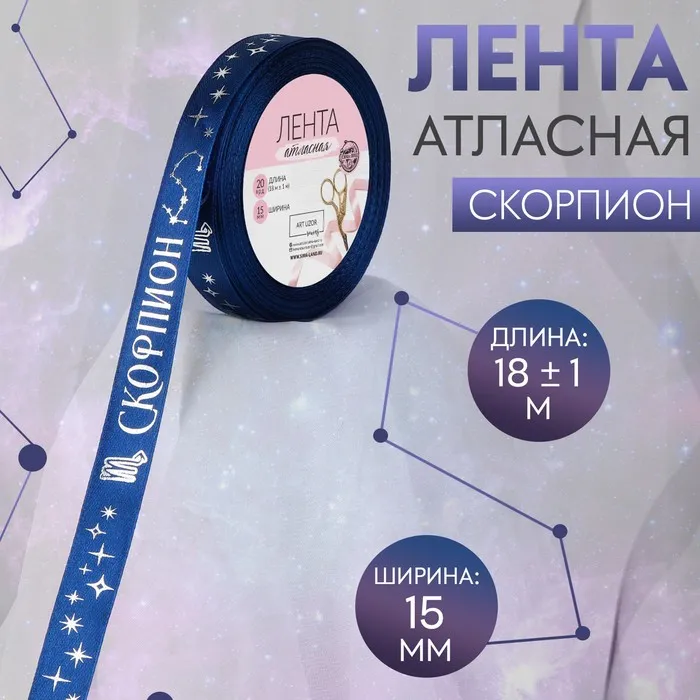 Лента атласная с тиснением «Скорпион», 15 мм, 18±1 м, тёмно-синяя №120 — Характеристики
