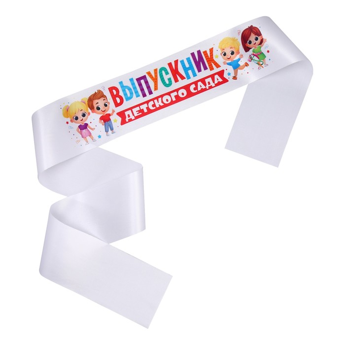 Лента атласная с цветным нанесением на выпускной «Выпускник детского сада», дети, 140×10 см — Характеристики