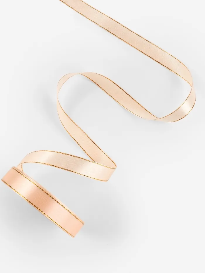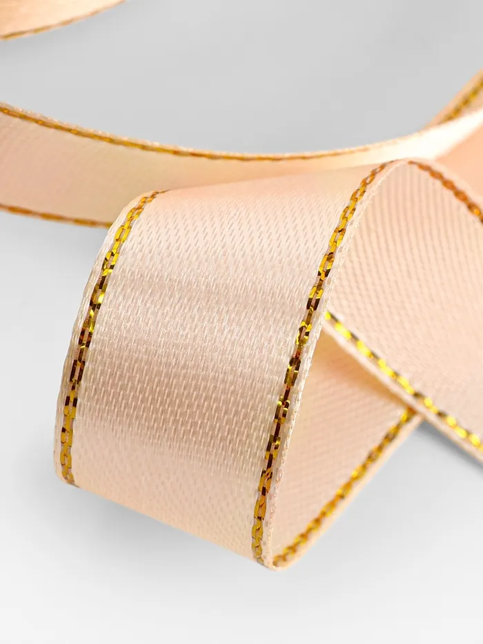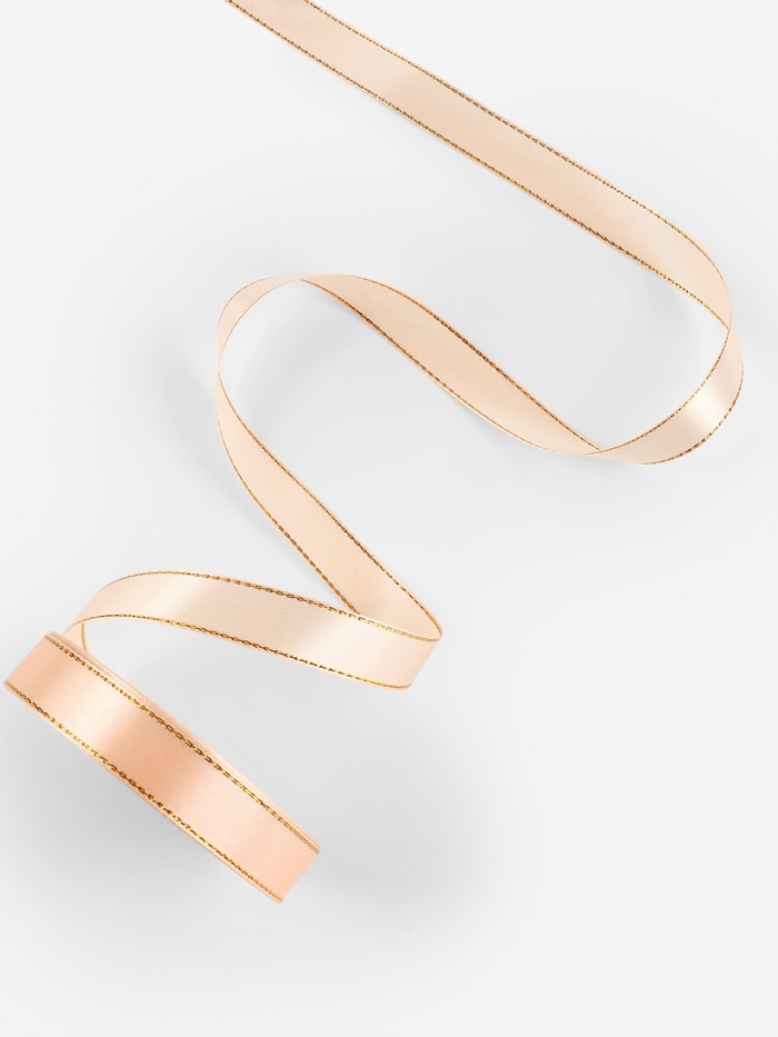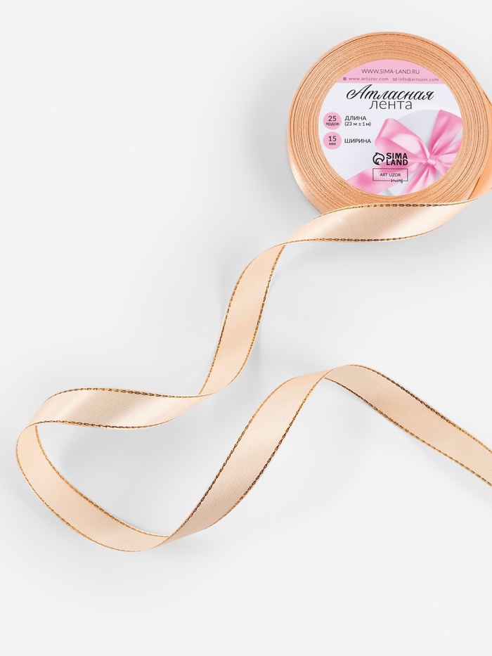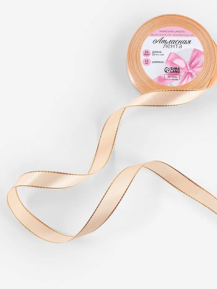 Лента атласная, с золотым люрексом, 15 мм, 23±1 м, нежно-персиковая №007 — Характеристики
