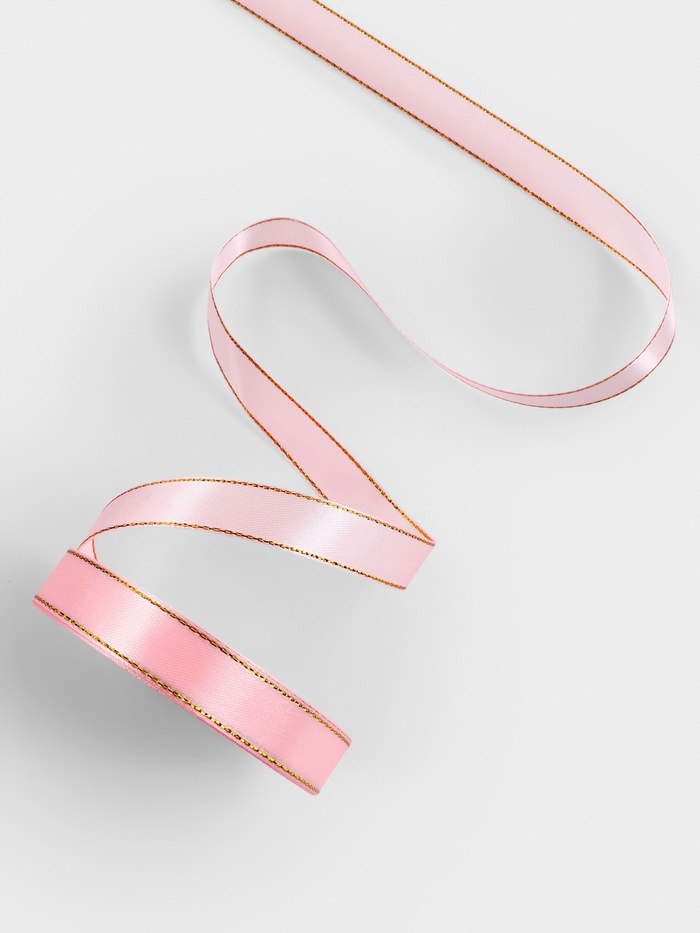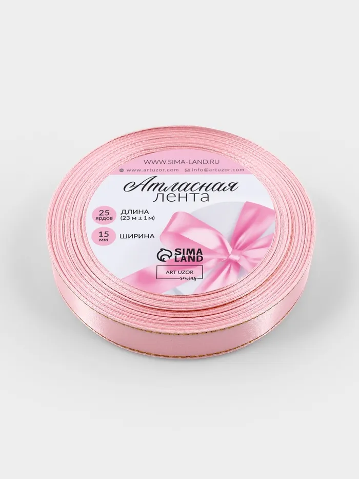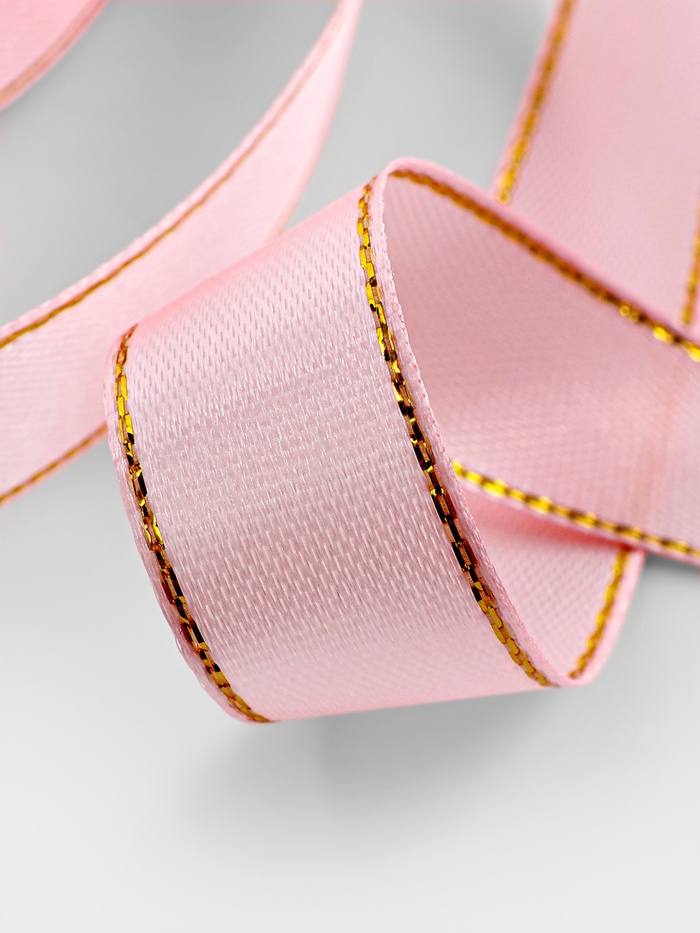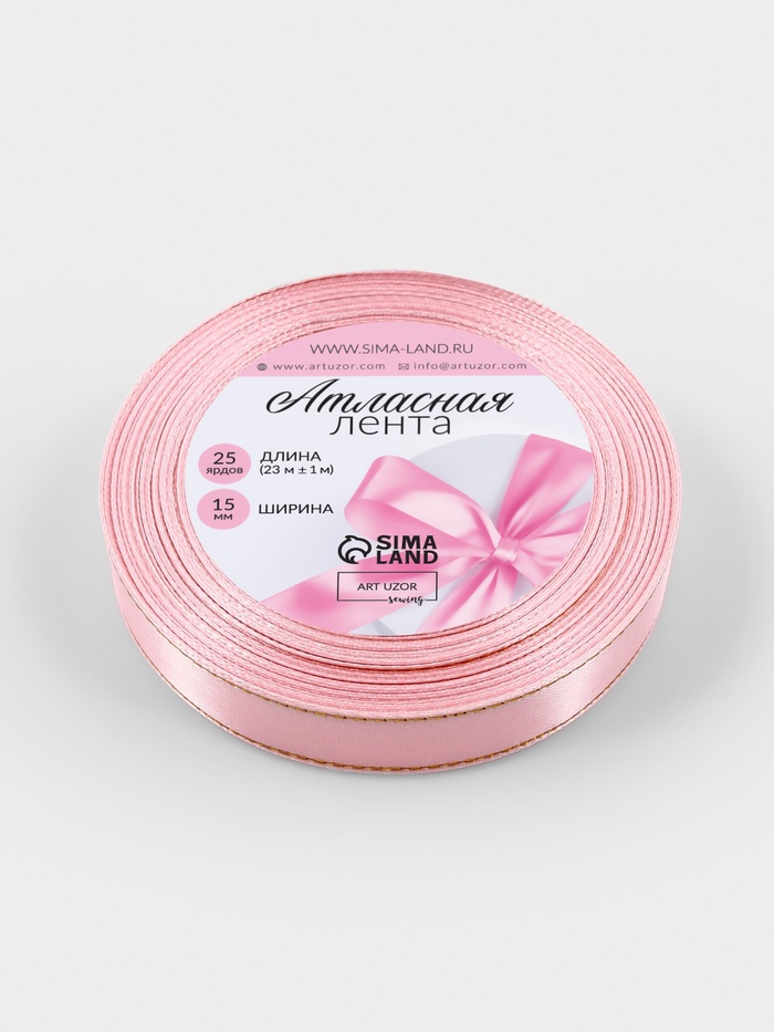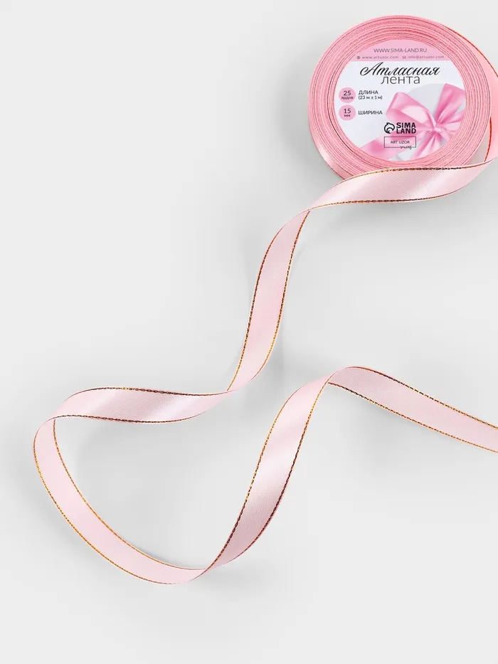 Лента атласная, с золотым люрексом, 15 мм, 23±1 м, розовая №04 — Характеристики
