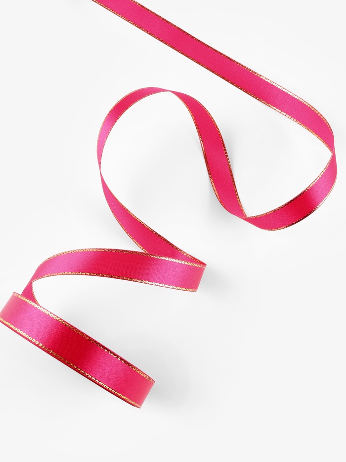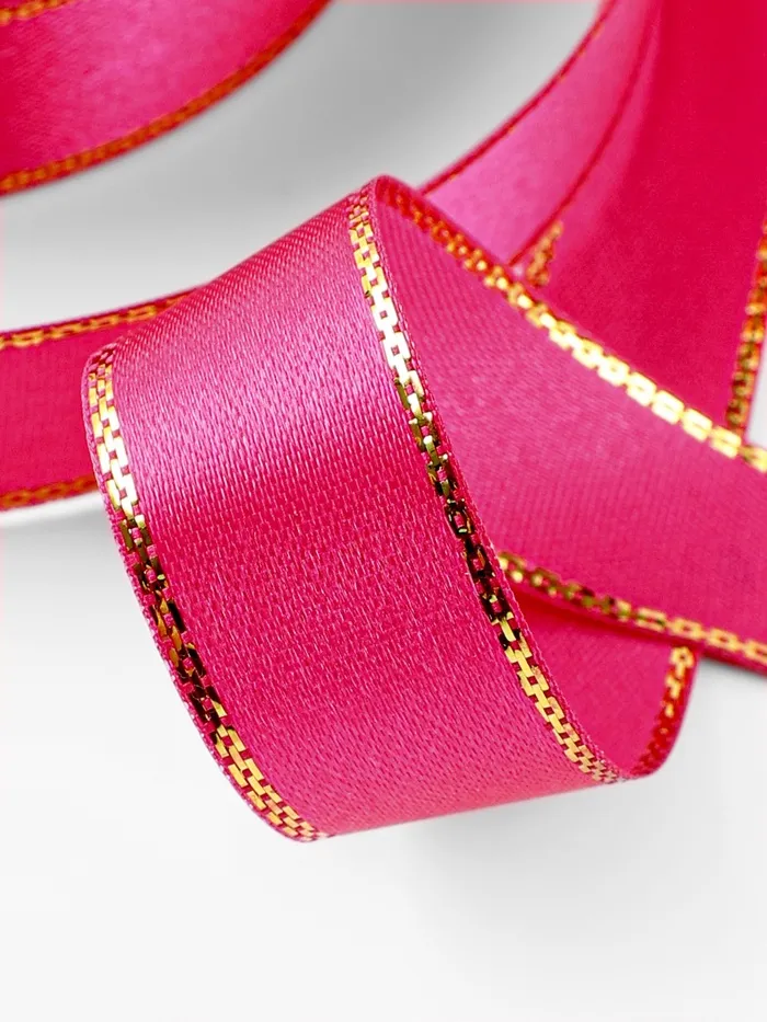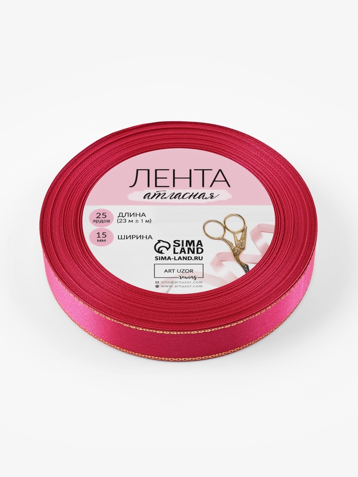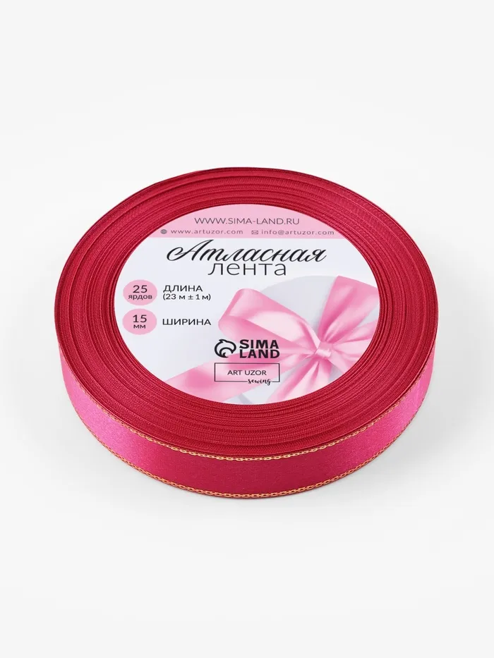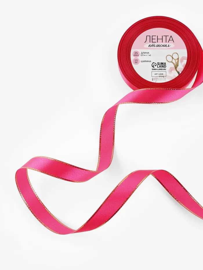 Лента атласная, с золотым люрексом, 15 мм, 23±1 м, розовая №72 — Характеристики