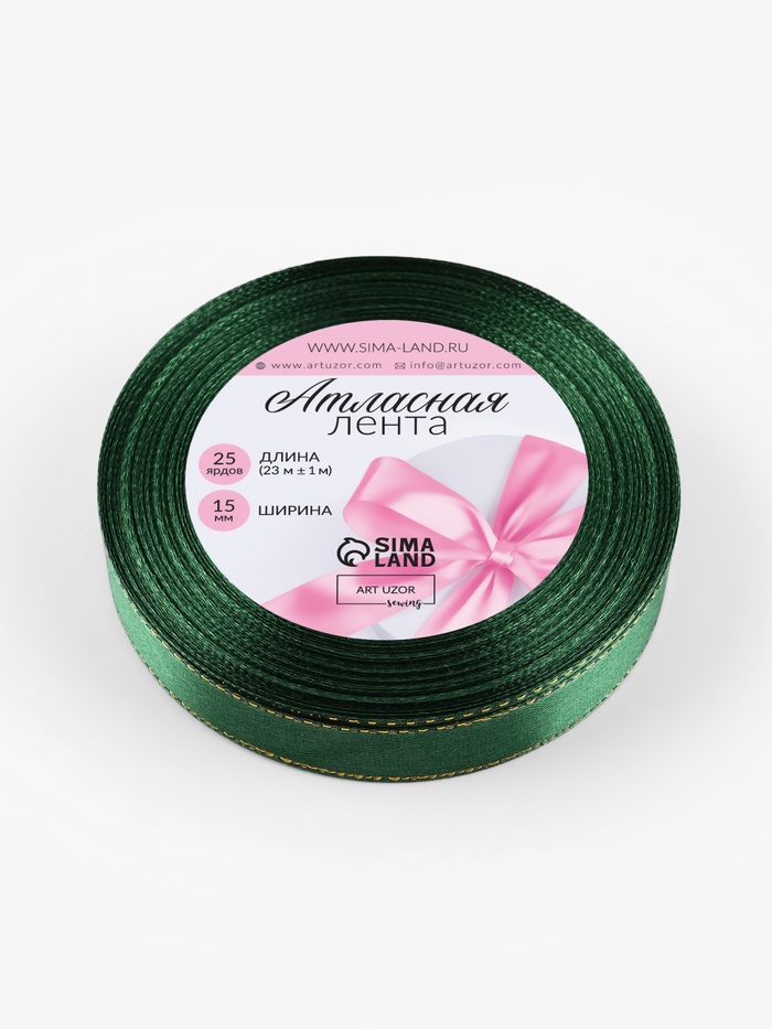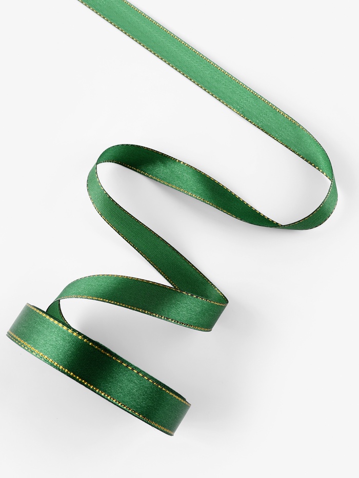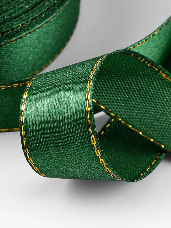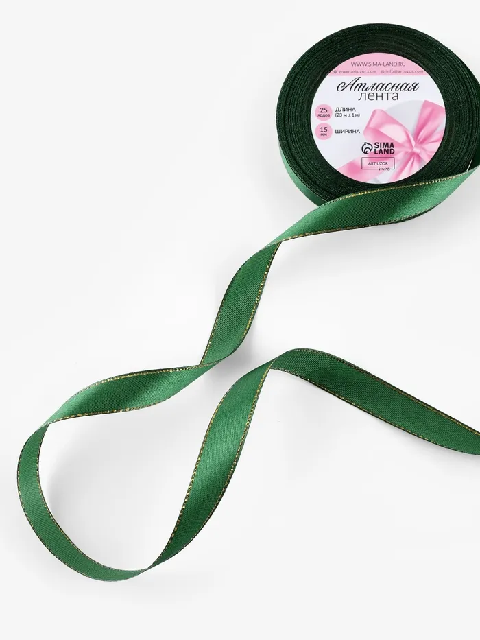 Лента атласная, с золотым люрексом, 15 мм, 23±1 м, зелёная №049 — Характеристики