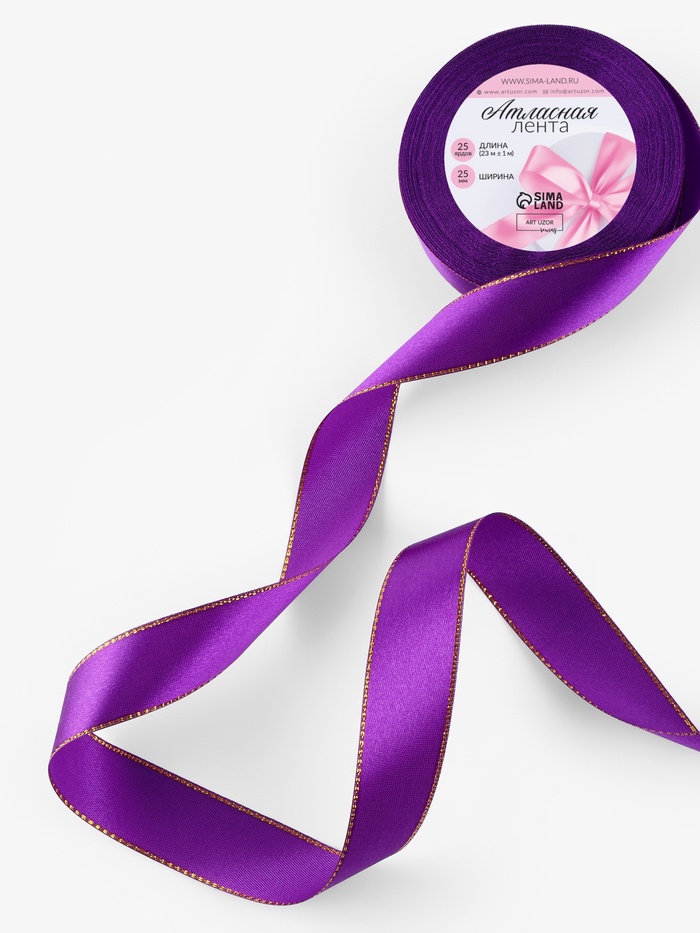 Лента атласная, с золотым люрексом, 25 мм, 23±1 м, фиолетовая, №35 — Характеристики