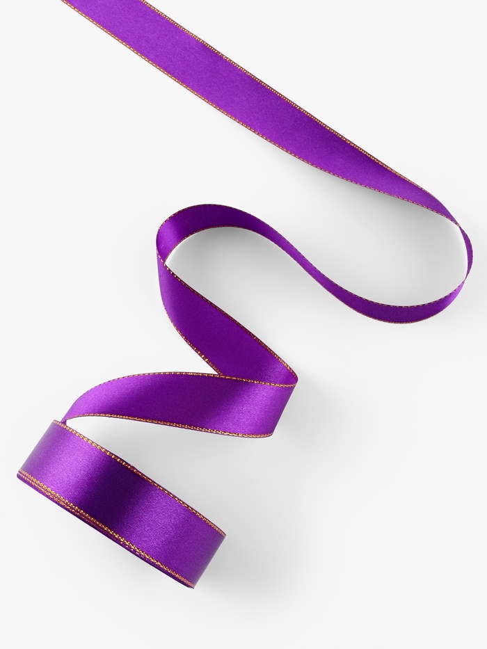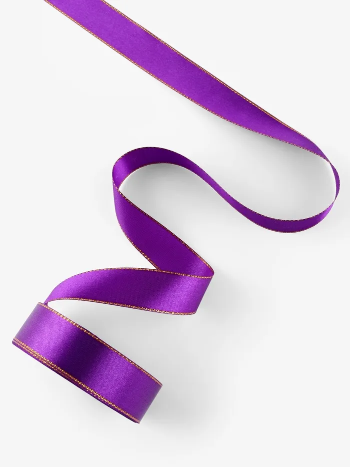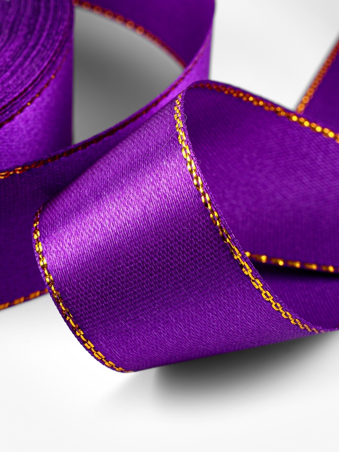 Лента атласная, с золотым люрексом, 25 мм, 23±1 м, фиолетовая, №35