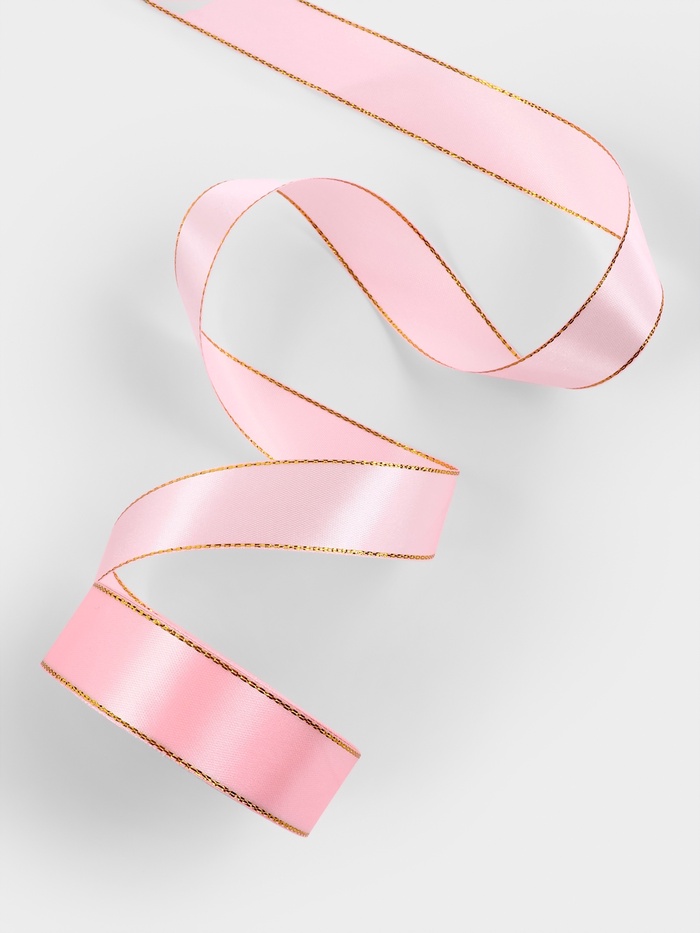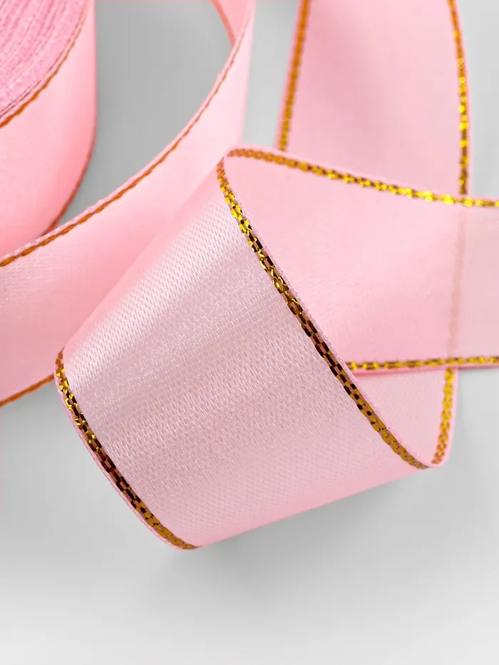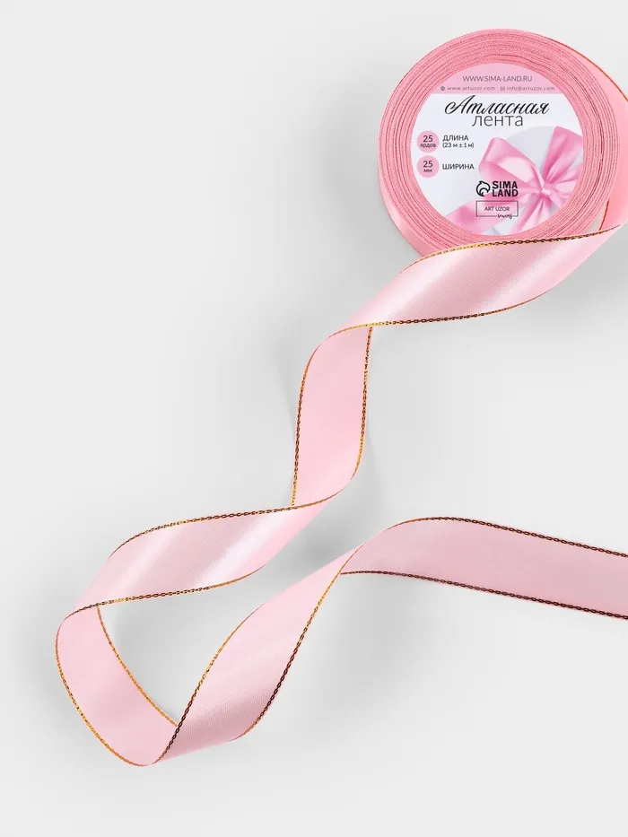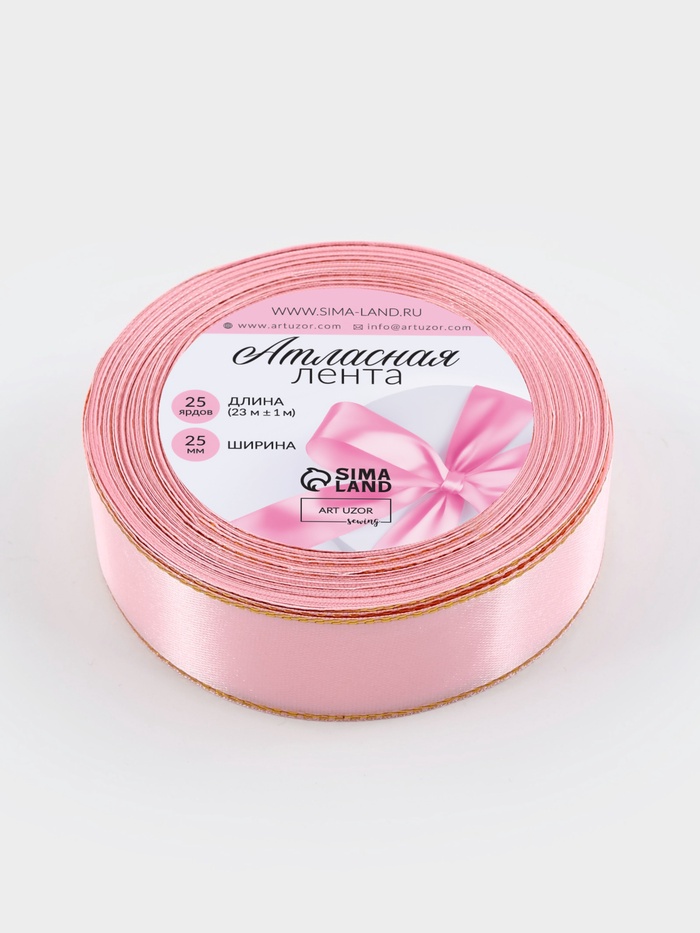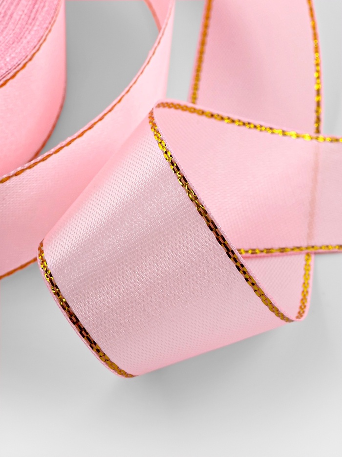 Лента атласная, с золотым люрексом, 25 мм, 23±1 м, розовая №04 — Характеристики