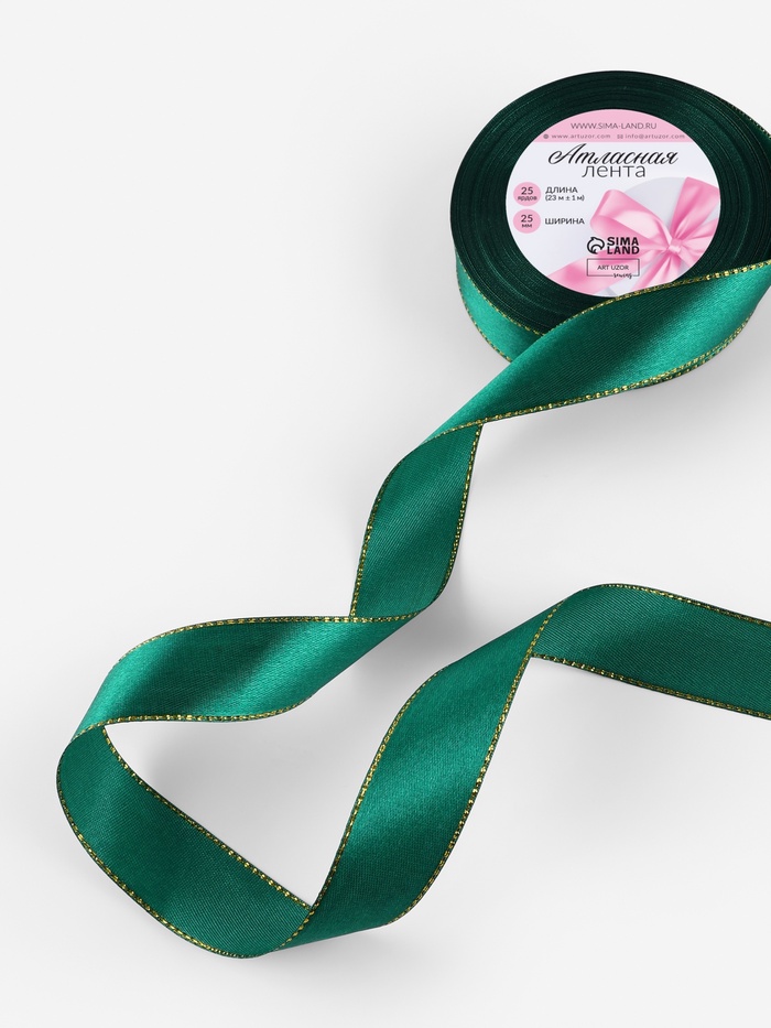 Дайте волю творчеству с изысканной атласной лентой, где глубокий зелёный цвет гармонично сочетается с мерцающим золотым люрексом. Это решение от торговой марки «Арт Узор» станет идеальным дополнением для ваших проектов, будь то декор одежды, создание праздничных композиций или оформление интерьера.