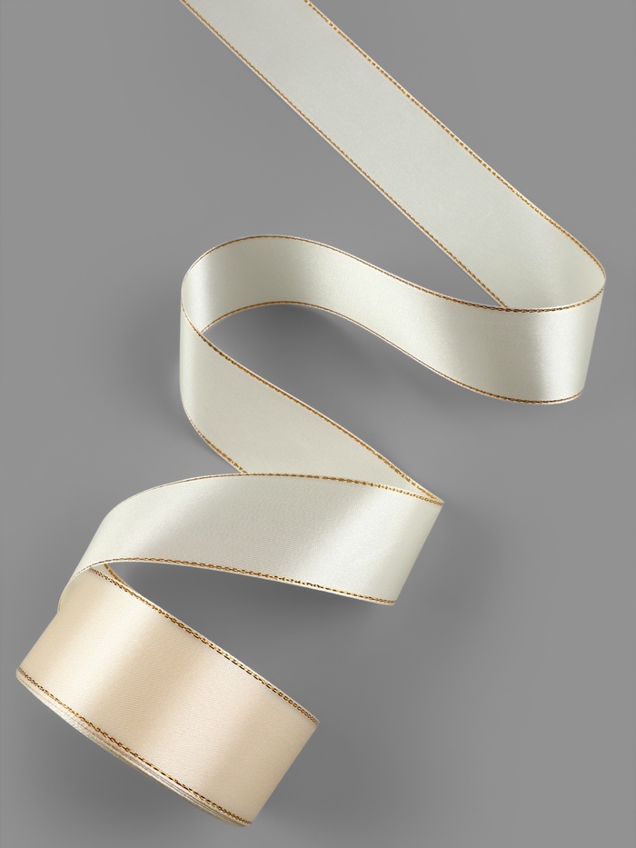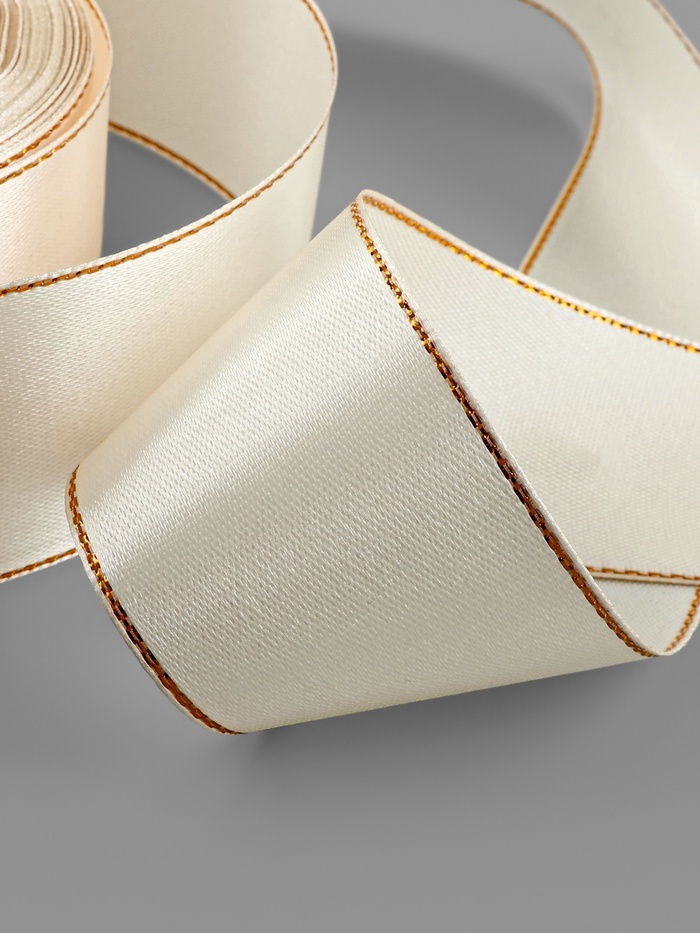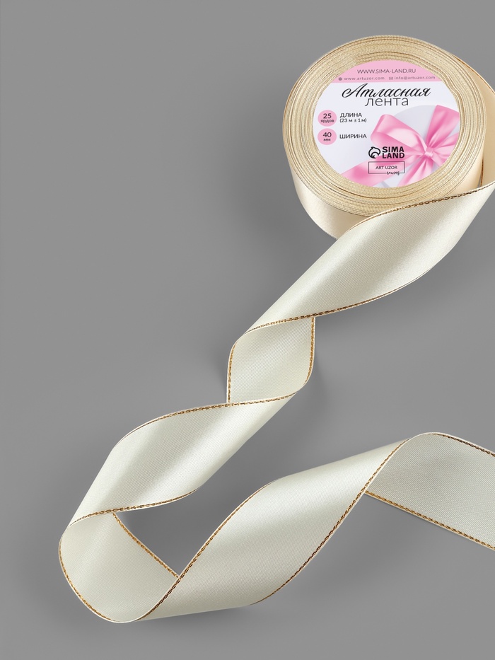 Лента атласная, с золотым люрексом, 40 мм, 23±1 м, светло-бежевая №08 — Характеристики