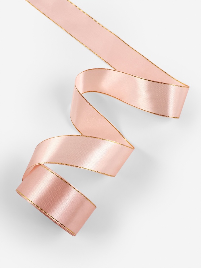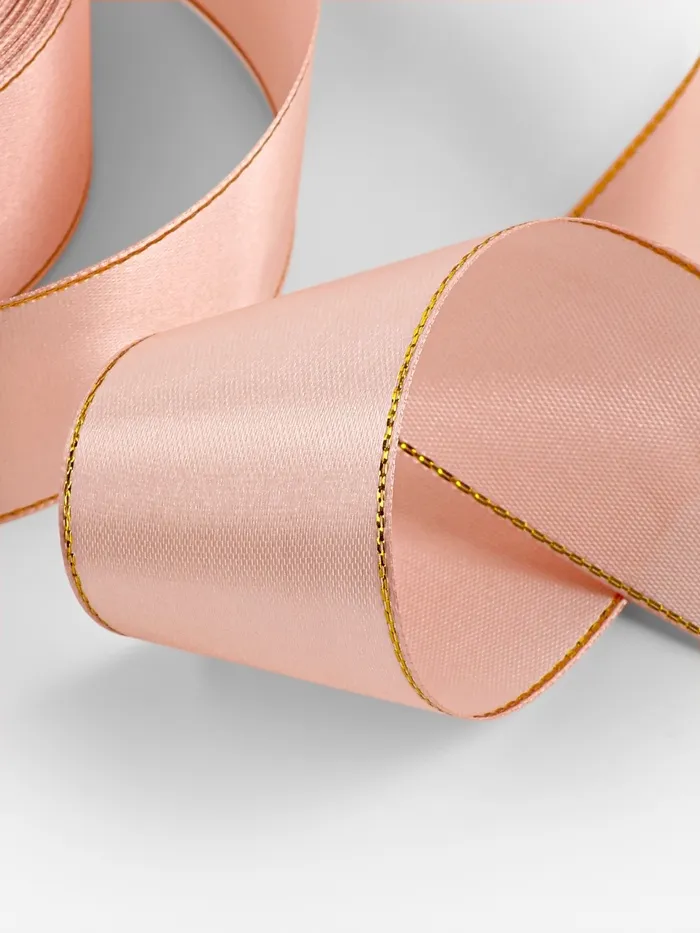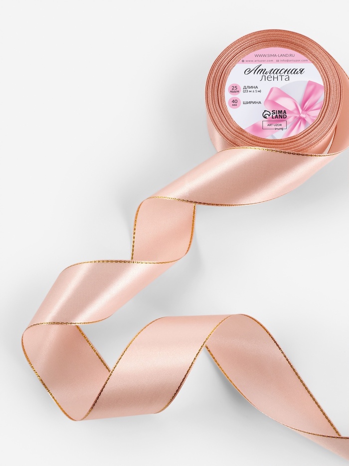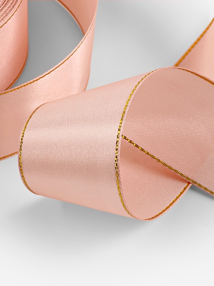 Лента атласная, с золотым люрексом, 40 мм, 23±1 м, светло-розовая №107 — Характеристики