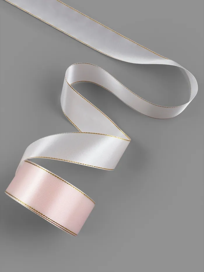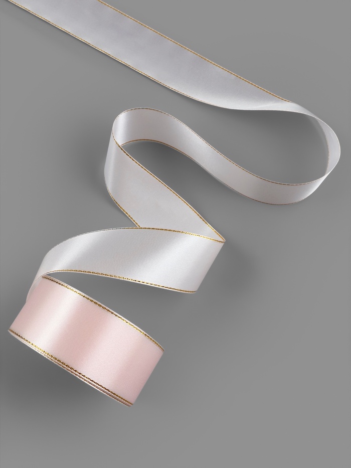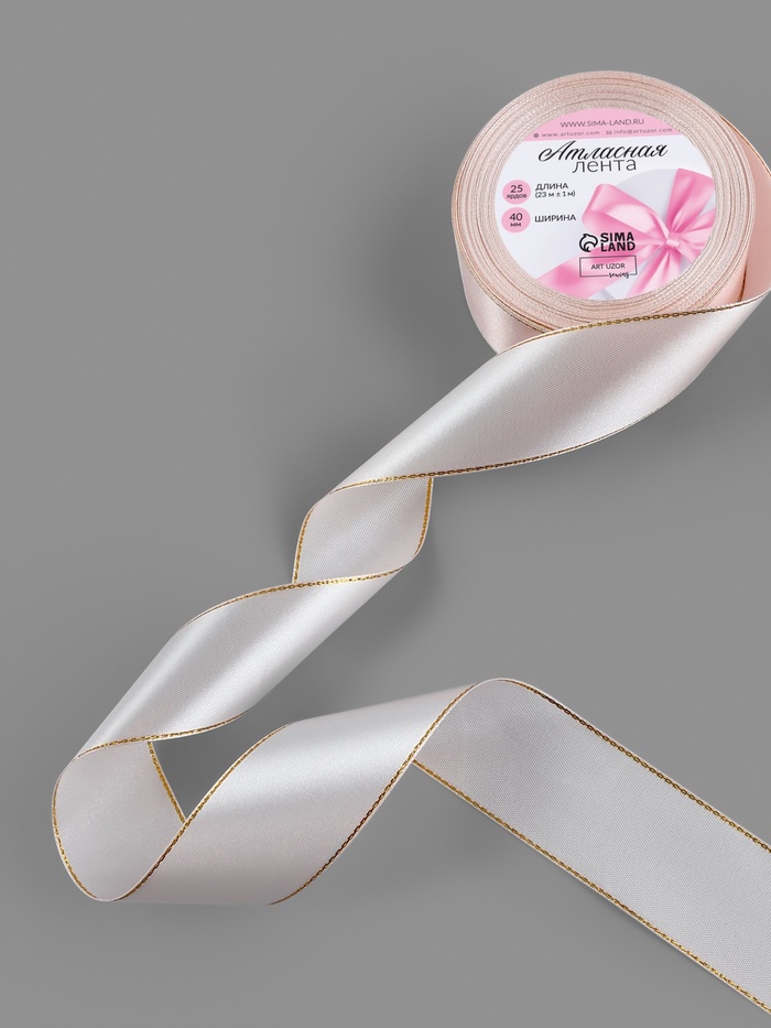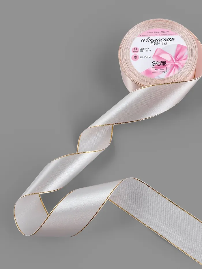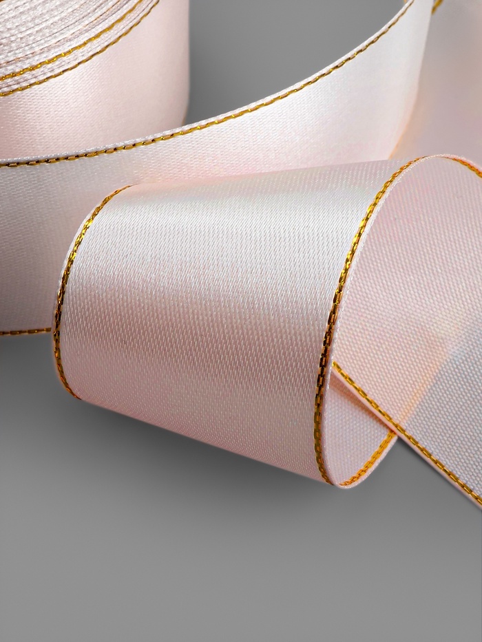 Лента атласная, с золотым люрексом, 40 мм, 23±1 м, светло-розовая №44 — Характеристики