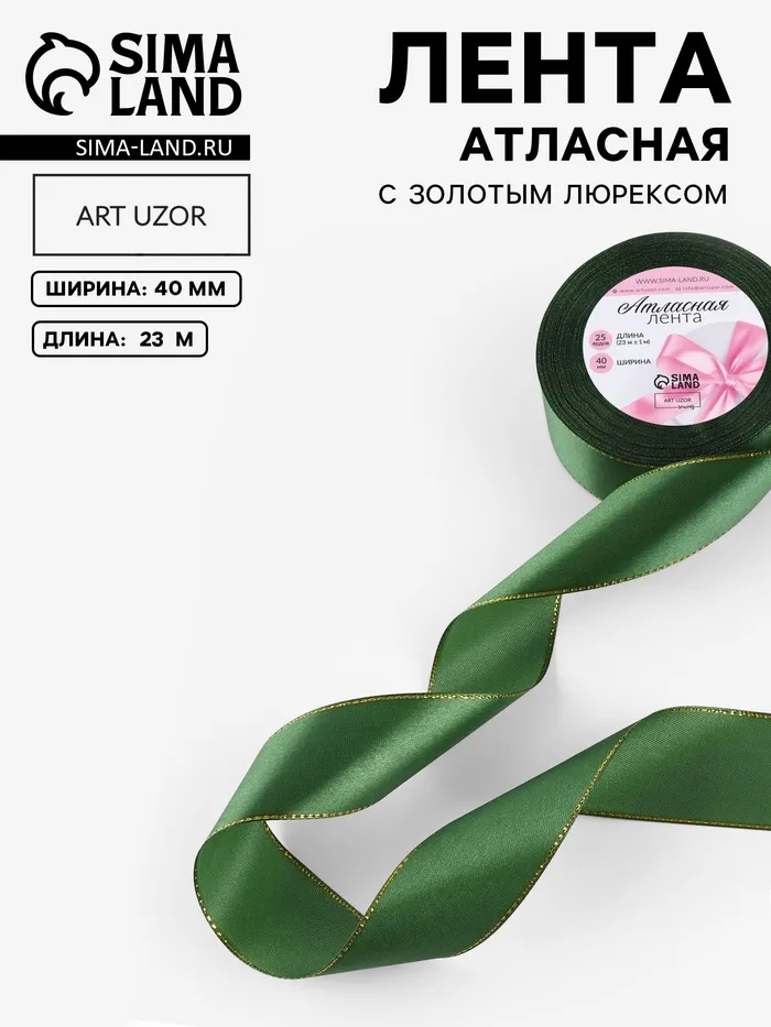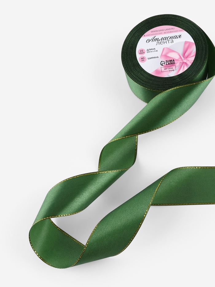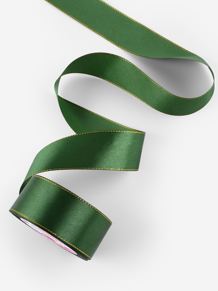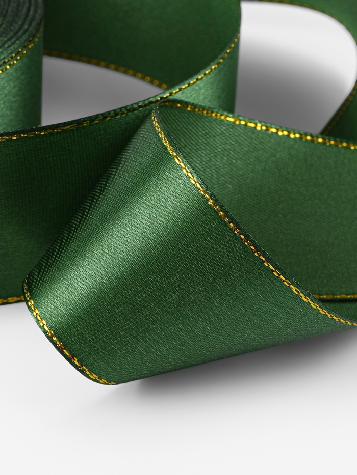 Лента атласная, с золотым люрексом, 40 мм, 23±1 м, зелёная №49 — Характеристики