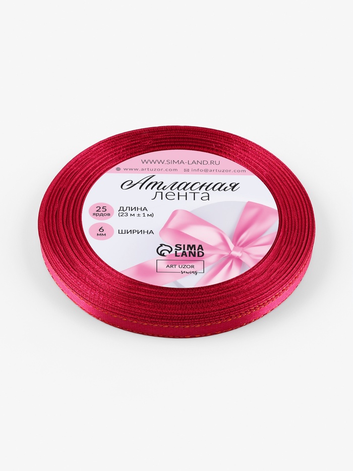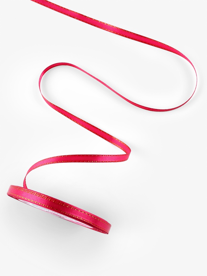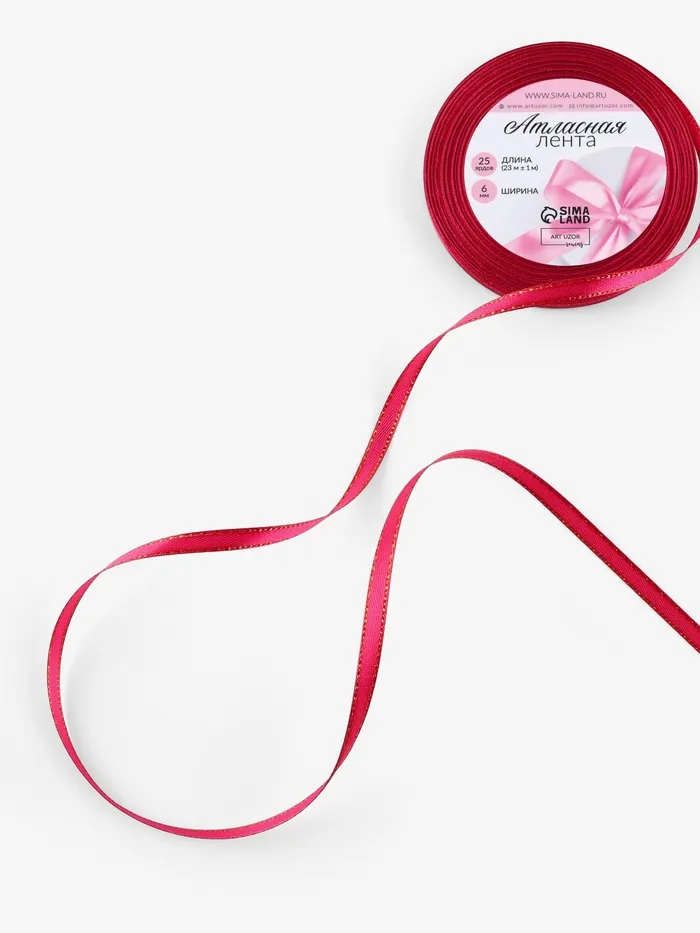Лента атласная, с золотым люрексом, 6 мм, 23±1 м, розовая №72 — Характеристики