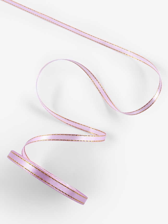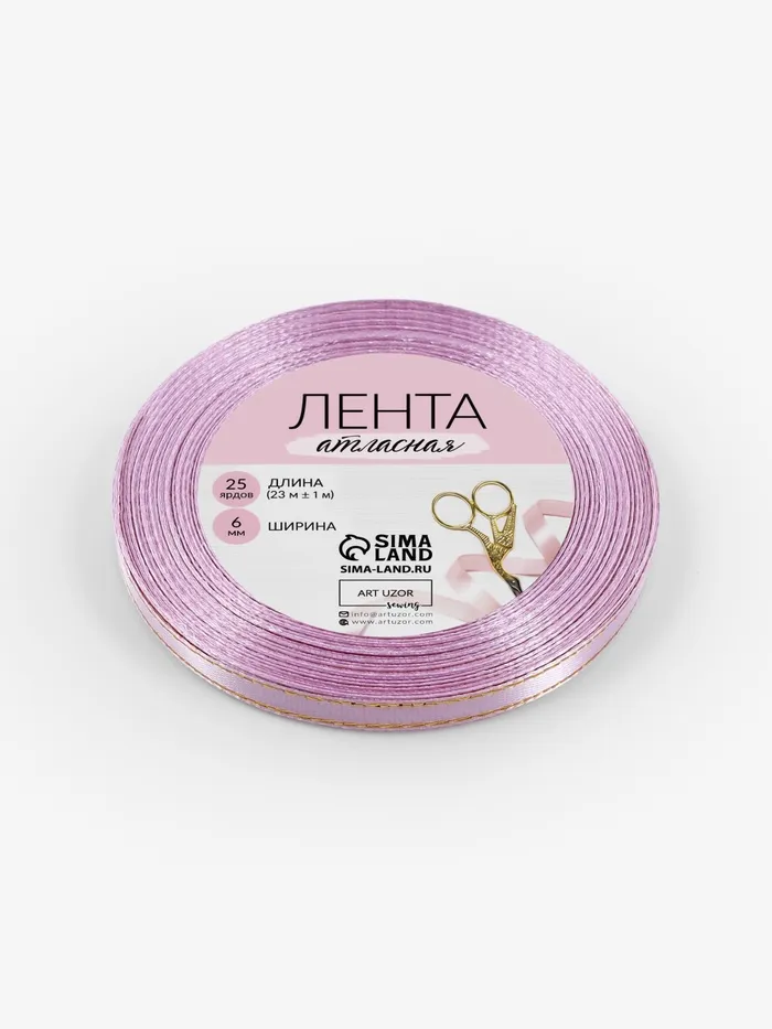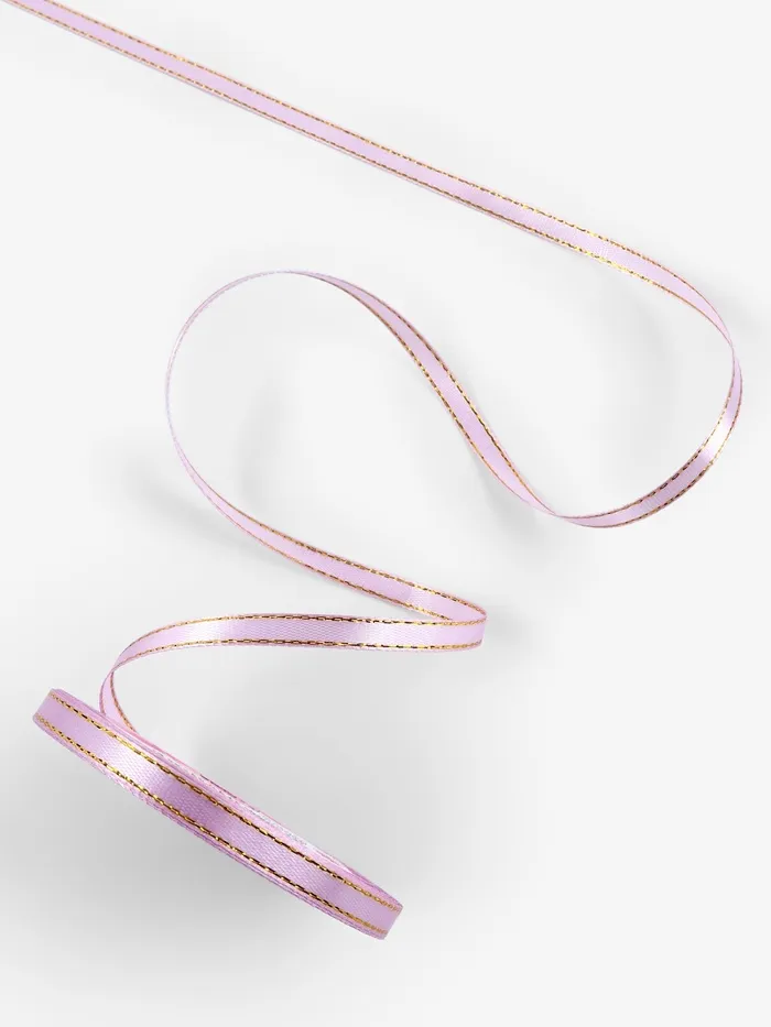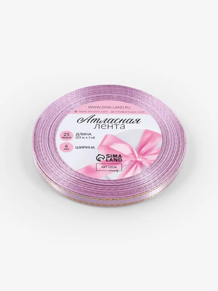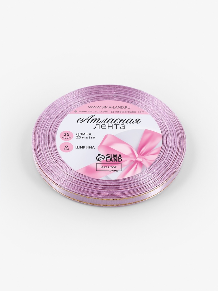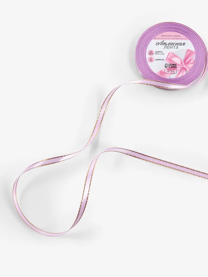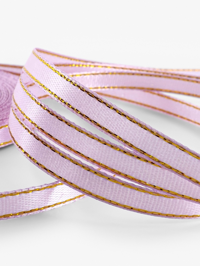Лента атласная, с золотым люрексом, 6 мм, 23±1 м, сиреневая №044 — Характеристики