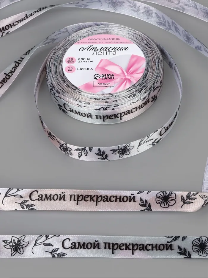Лента атласная «Самой прекрасной», 15 мм, 23±1 м, разноцветная — Характеристики