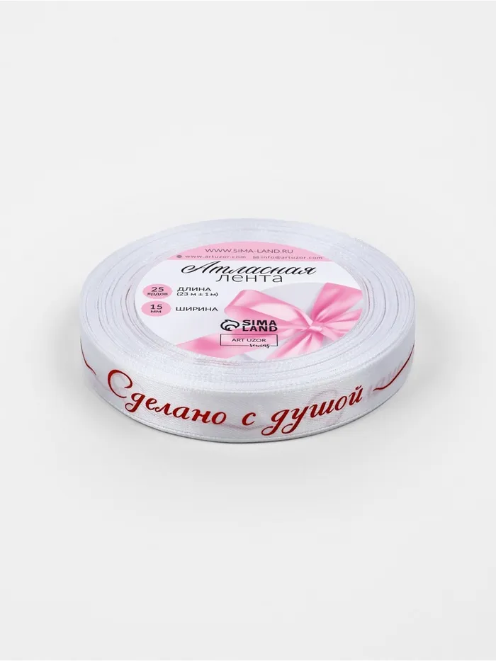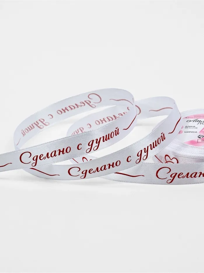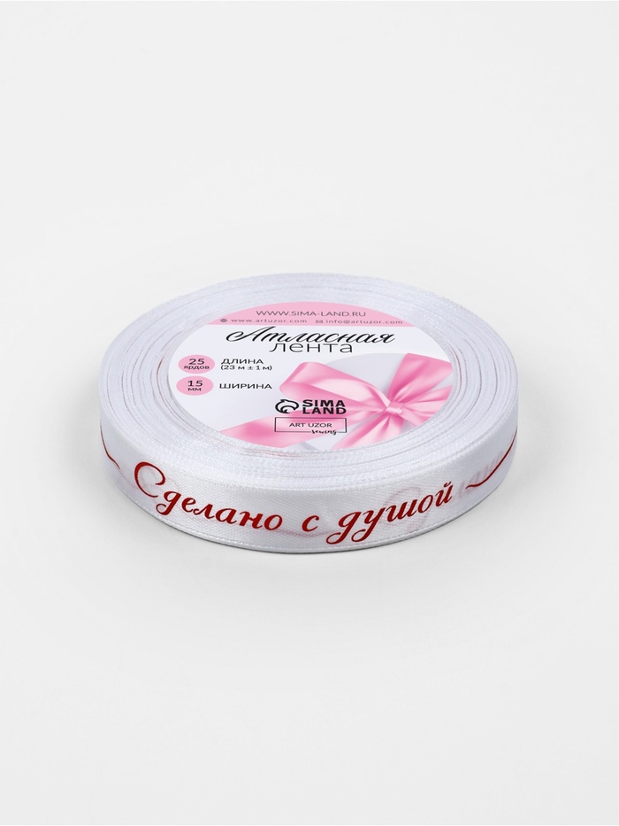 Лента атласная «Сделано с душой», 15 мм, 23±1 м, белая, красная — Характеристики