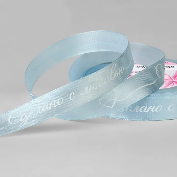 Лента атласная «Сделано с любовью», 15 мм, 23±1 м, голубая №104 — Характеристики
