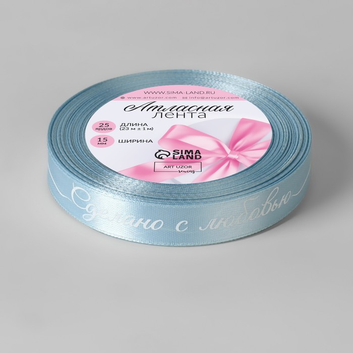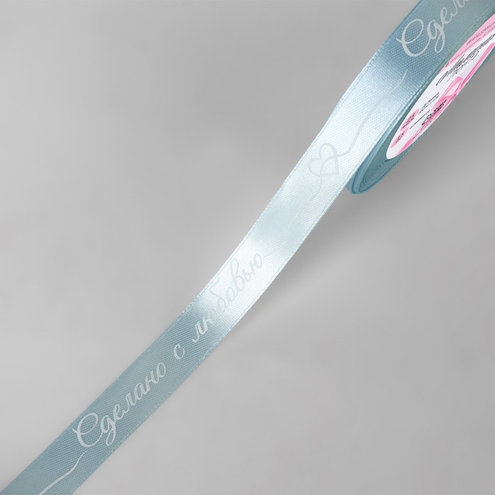 Лента атласная «Сделано с любовью», 15 мм, 23±1 м, голубая №104