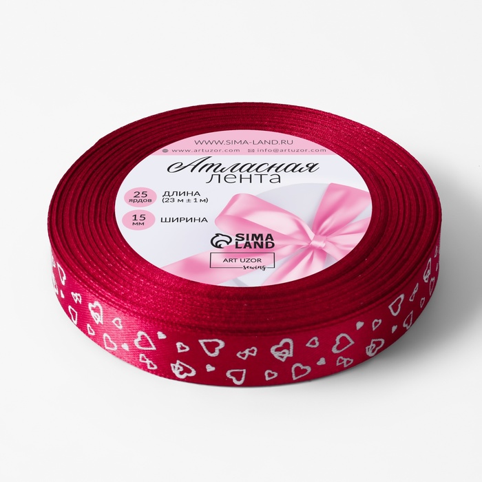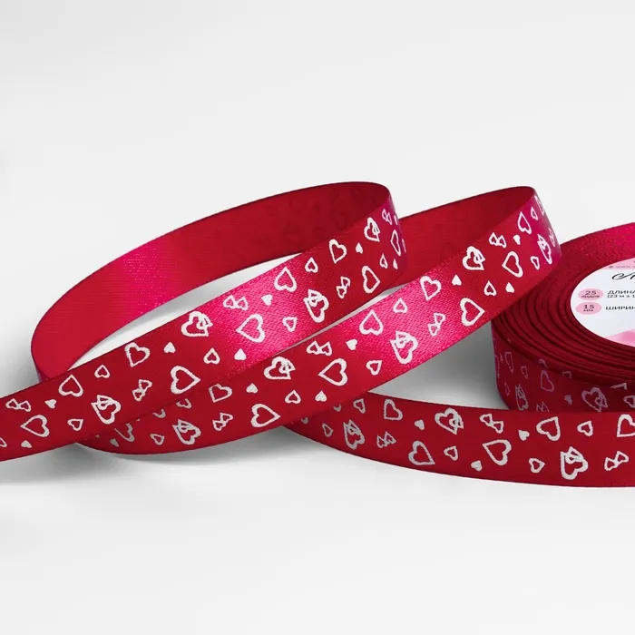 Лента атласная «Сердца», 15 мм, 23±1 м, малиновая №072 — Характеристики