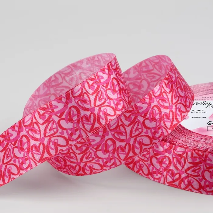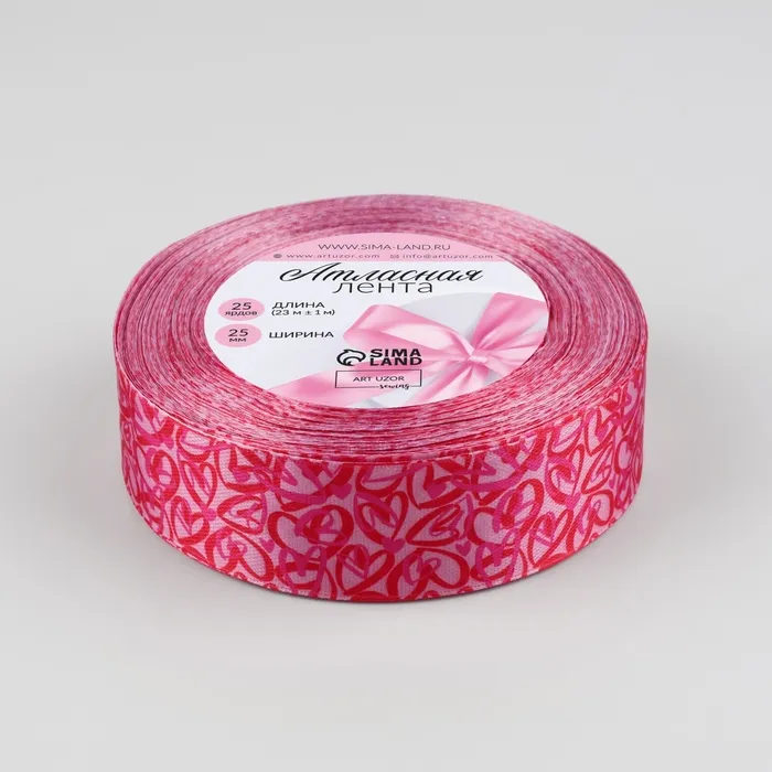 Лента атласная «Сердца», 25 мм, 23±1 м, фуксия — Характеристики