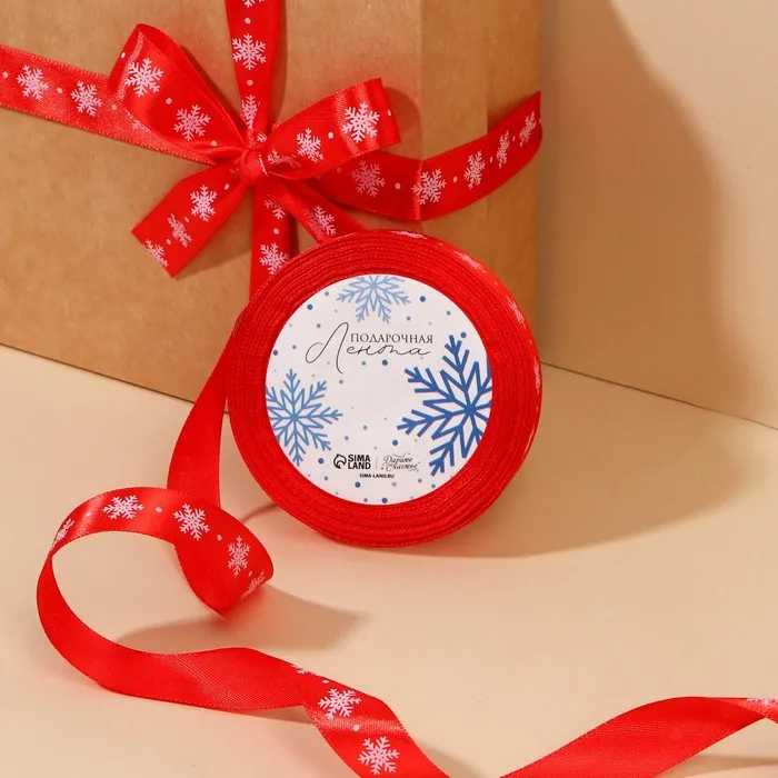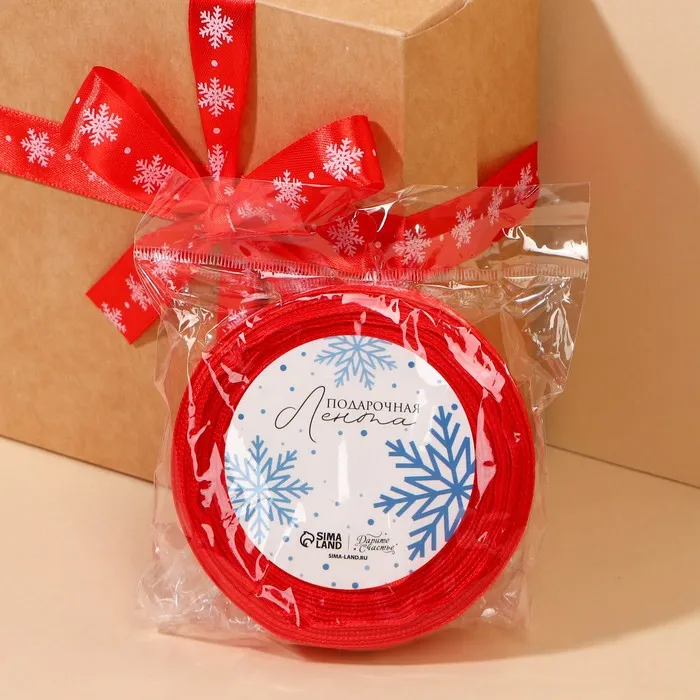 Лента атласная «Снежинки», красная, 2 см × 25 ярдов (22,5 м) — Характеристики