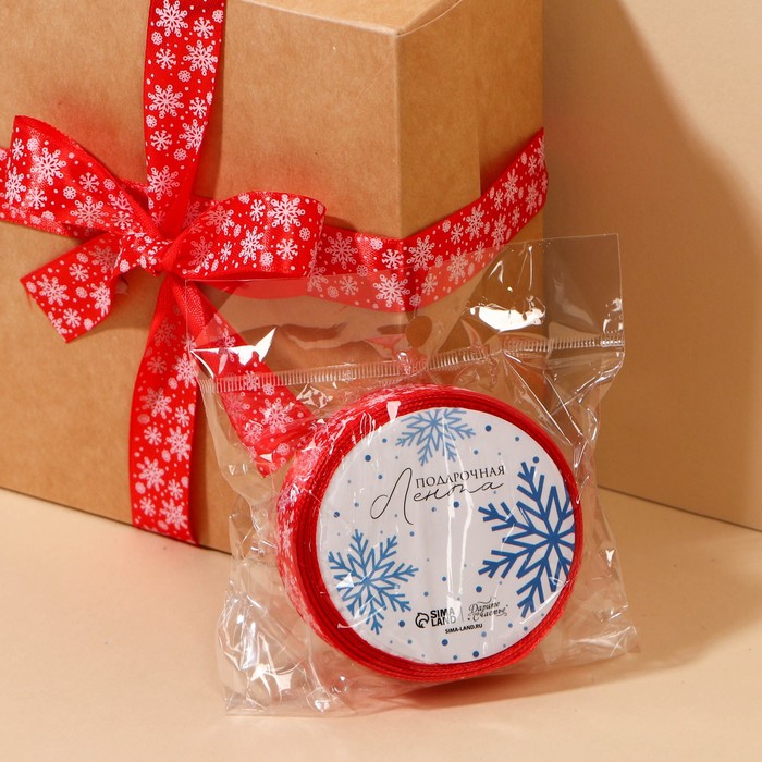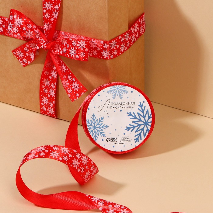 Лента атласная «Снежный вальс», красная, 2 см × 5 м