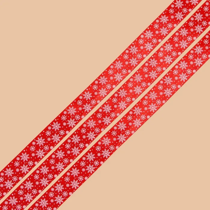 Лента репсовая с тиснением «Снежинки», 25 мм, 23±1 м, красная, золотой №1133
