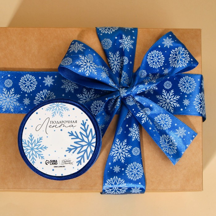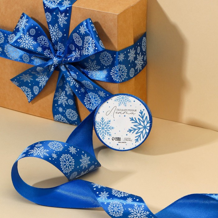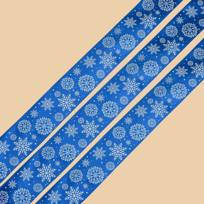 Лента атласная «Снежный вальс», синяя , 4 см × 5 м