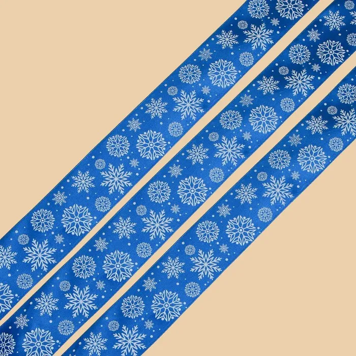 Лента атласная «Снежный вальс», синяя , 4 см × 5 м — Характеристики