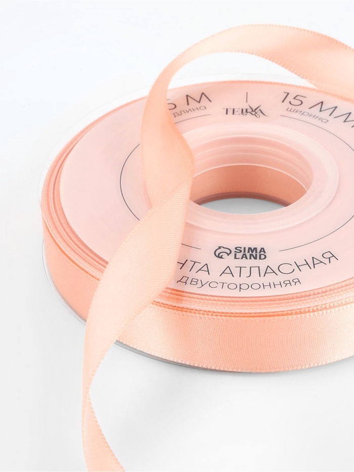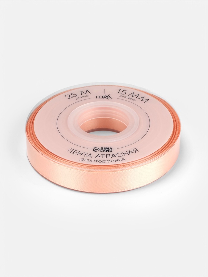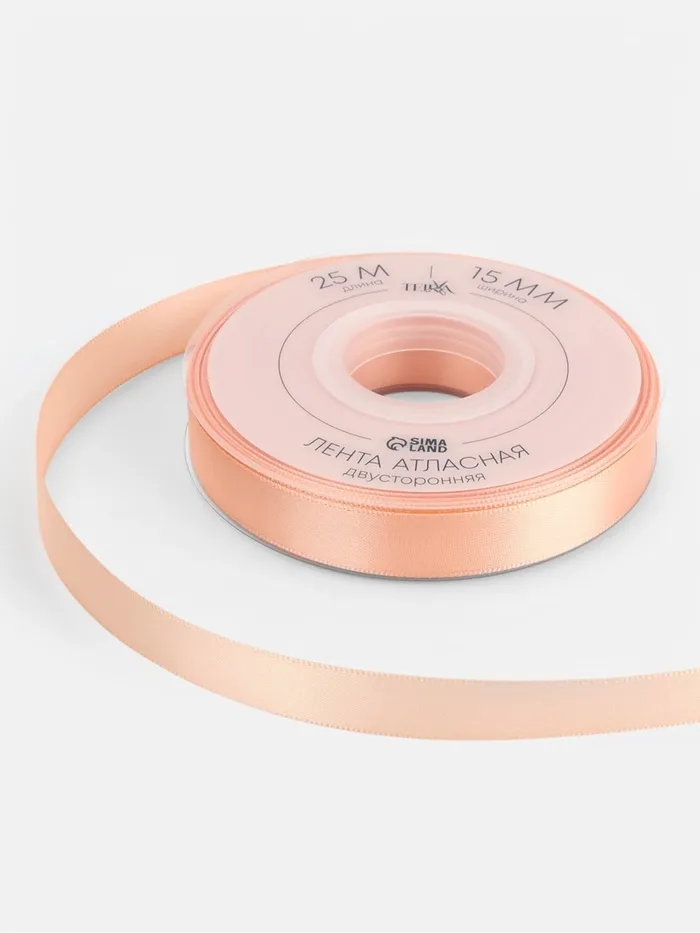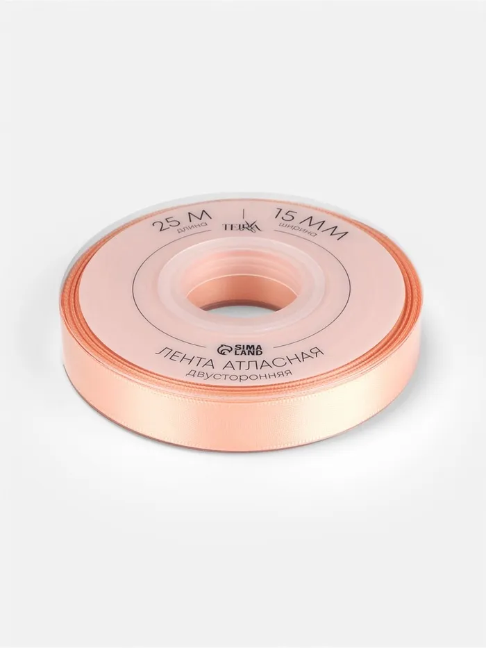 Лента атласная TEIRA, двухсторонняя, 15 мм, 25±1 м, бежевая №0714 — Характеристики