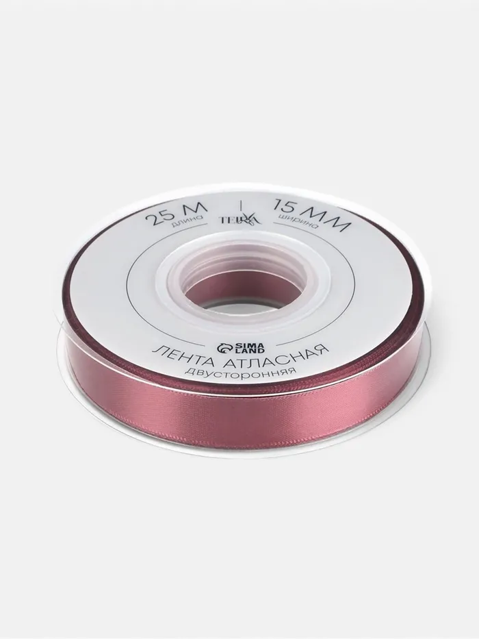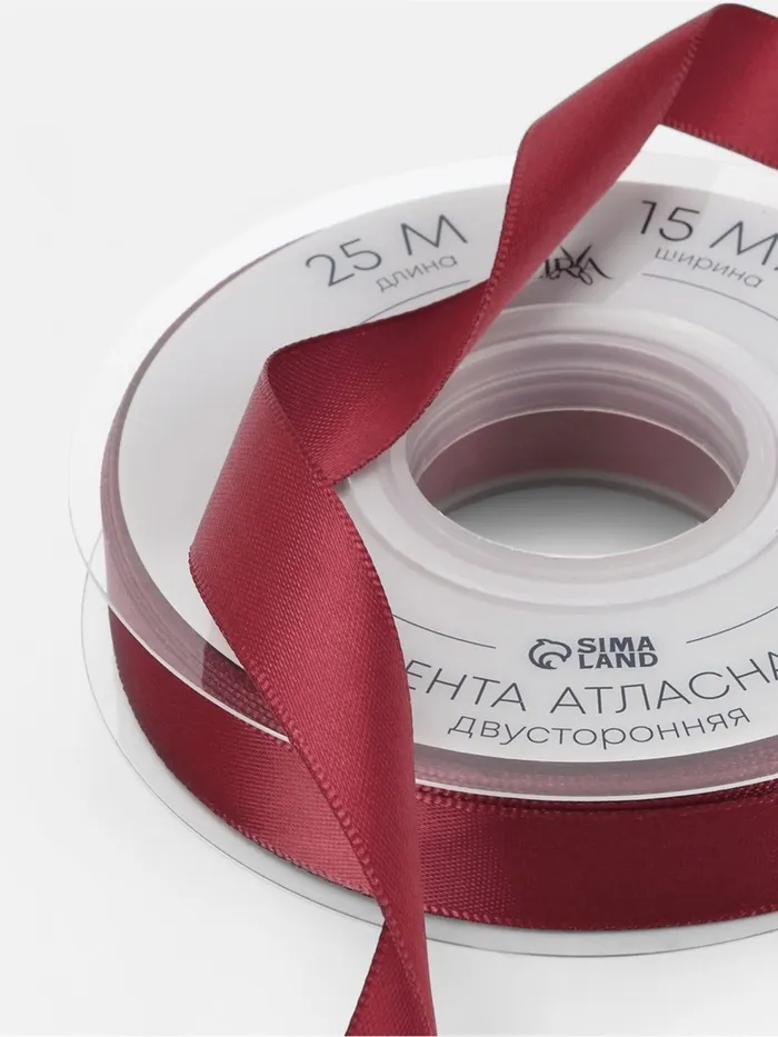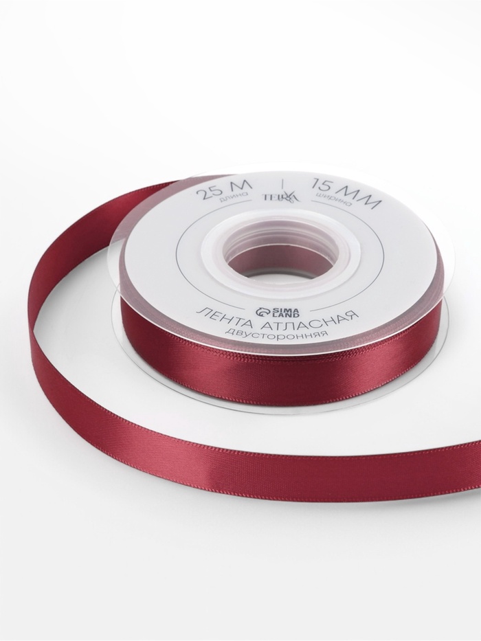Лента атласная TEIRA, двухсторонняя, 15 мм, 25±1 м, бордовая №0789 — Характеристики