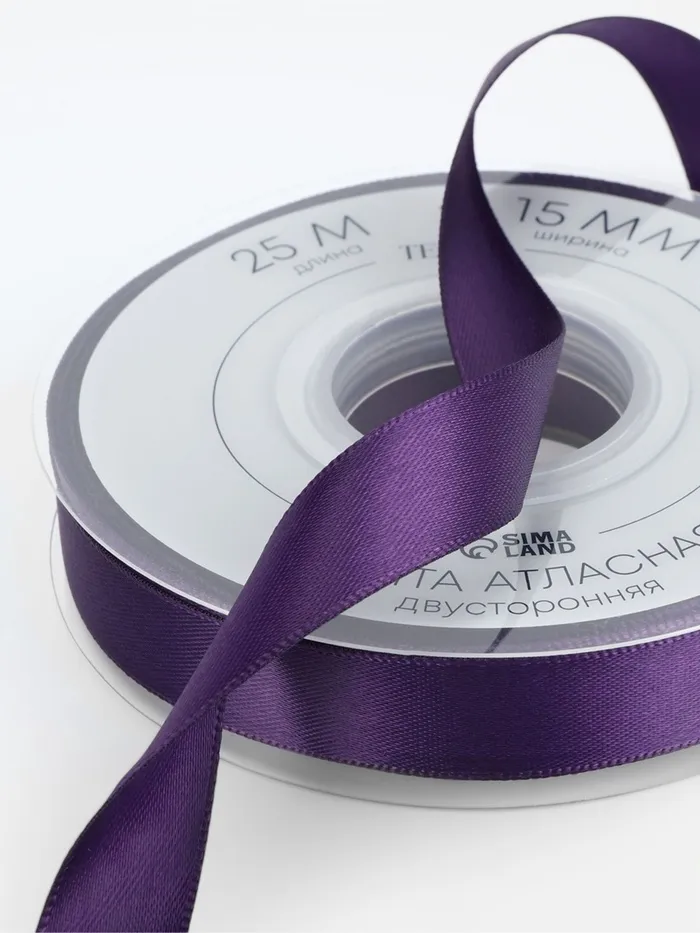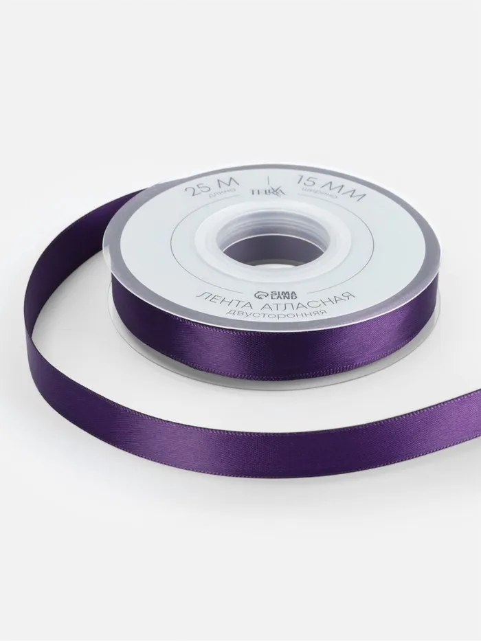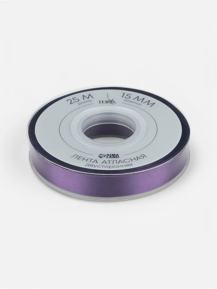 Лента атласная TEIRA, двухсторонняя, 15 мм, 25±1 м, фиолетовая №476 — Характеристики
