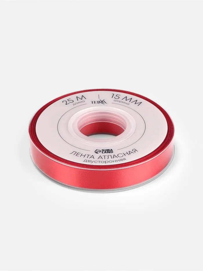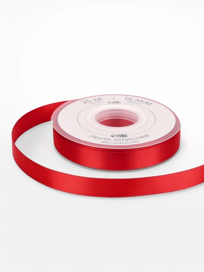 Лента атласная TEIRA, двухсторонняя, 15 мм, 25±1 м, красная №0250 — Характеристики