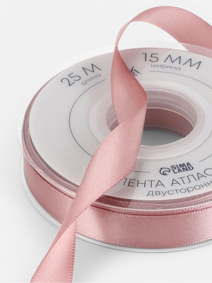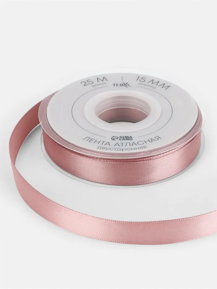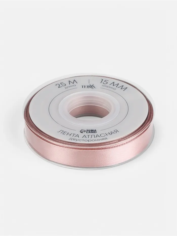 Лента атласная TEIRA, двухсторонняя, 15 мм, 25±1 м, нежно-розовая №164 — Характеристики