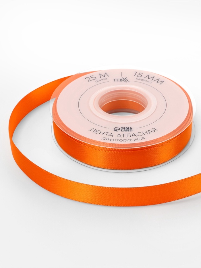Лента атласная TEIRA, двухсторонняя, 15 мм, 25±1 м, оранжевая №751 — Характеристики