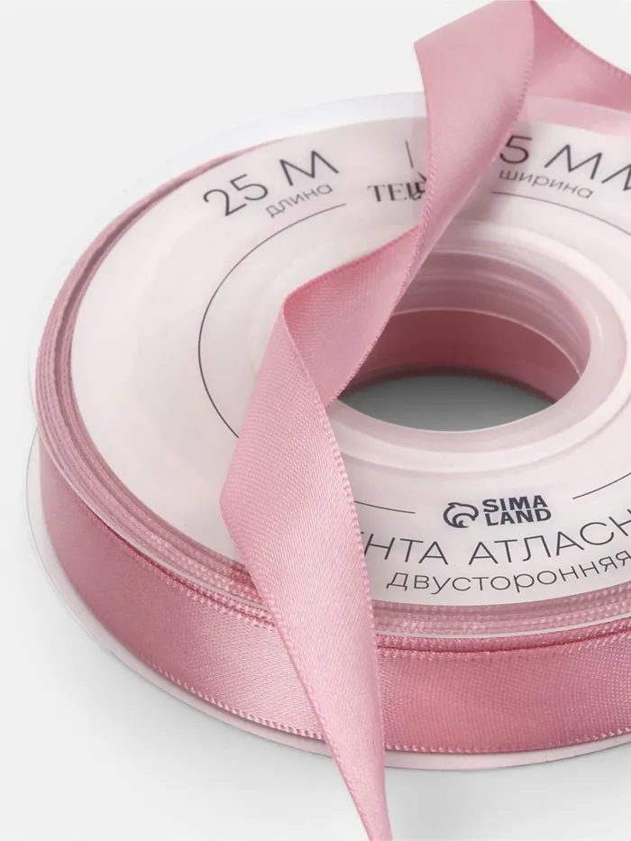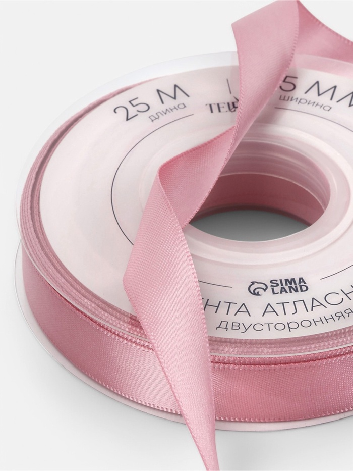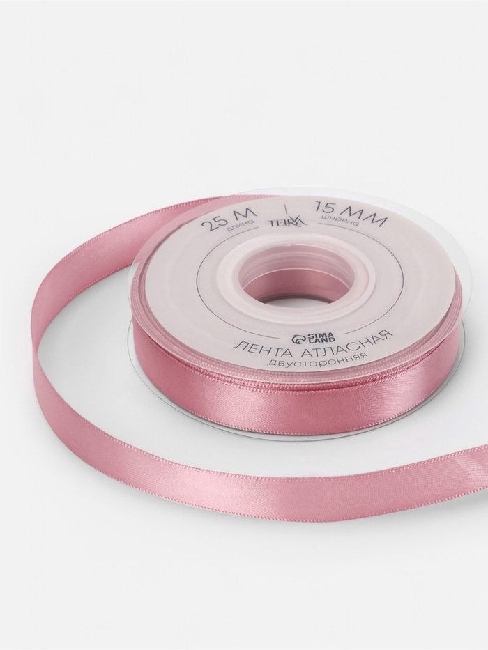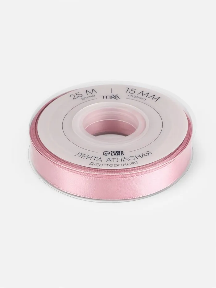 Лента атласная TEIRA, двухсторонняя, 15 мм, 25±1 м, розовая №158 — Характеристики