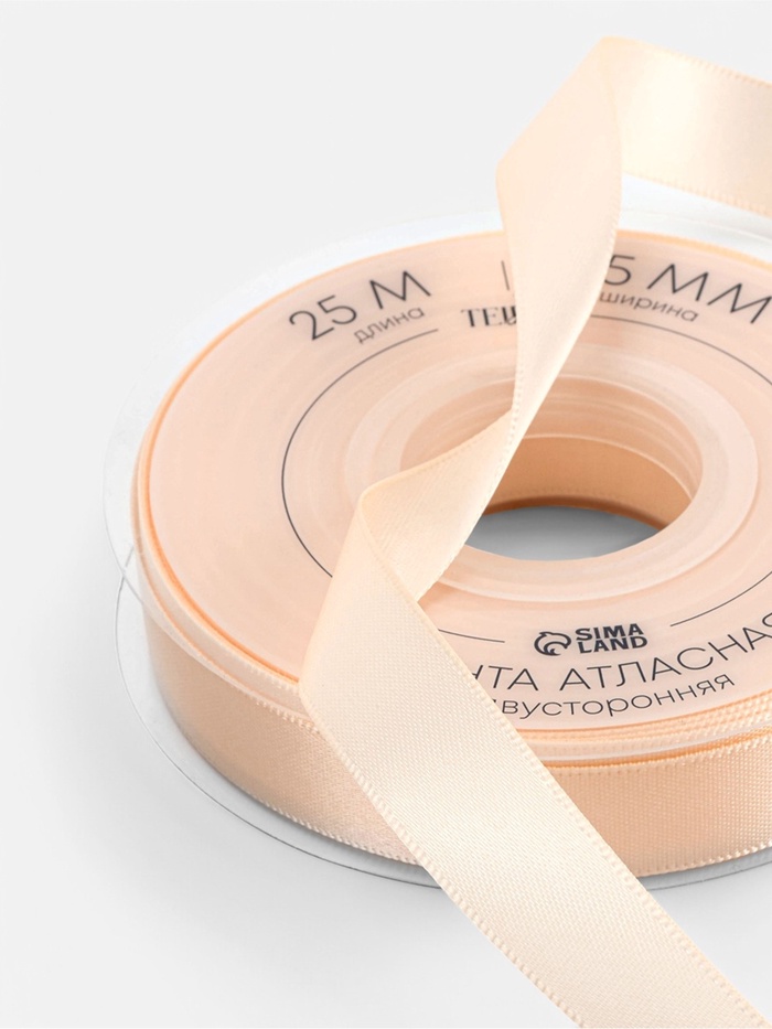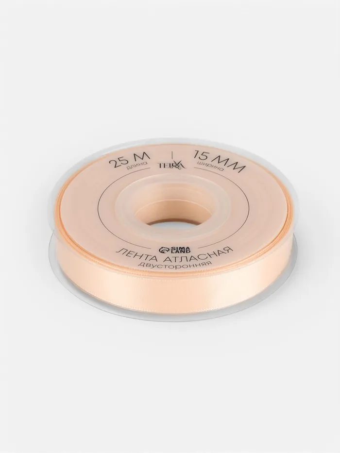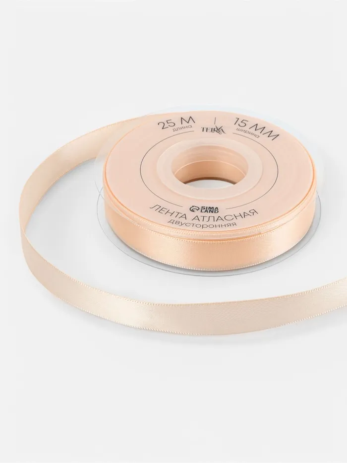 Лента атласная TEIRA, двухсторонняя, 15 мм, 25±1 м, светло-бежевая №112 — Характеристики