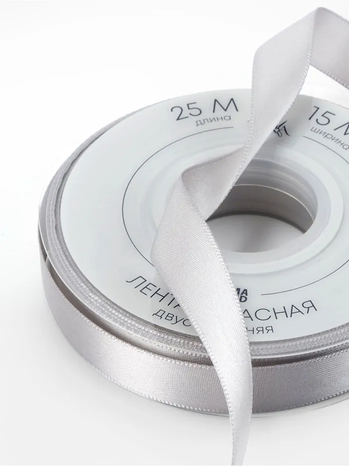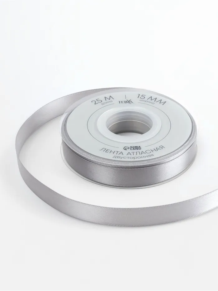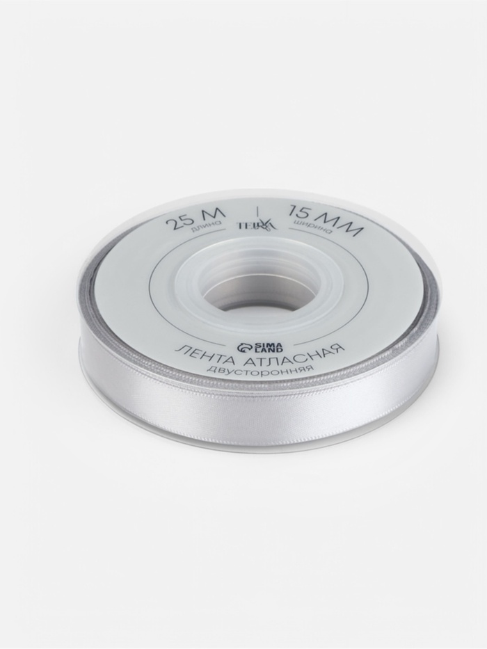 Лента атласная TEIRA, двухсторонняя, 15 мм, 25±1 м, цвет серебряный №837 — Характеристики