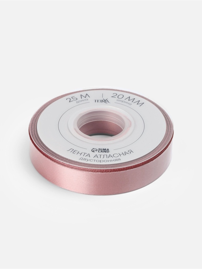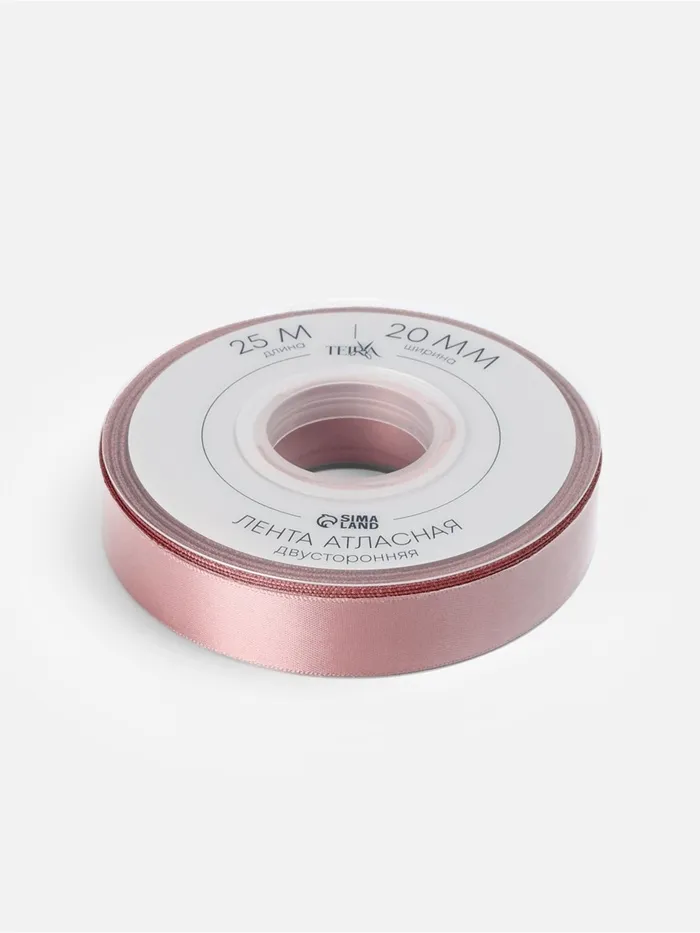 Лента атласная TEIRA, двухсторонняя, 20 мм, 25±1 м, нежно-розовая №164 — Характеристики