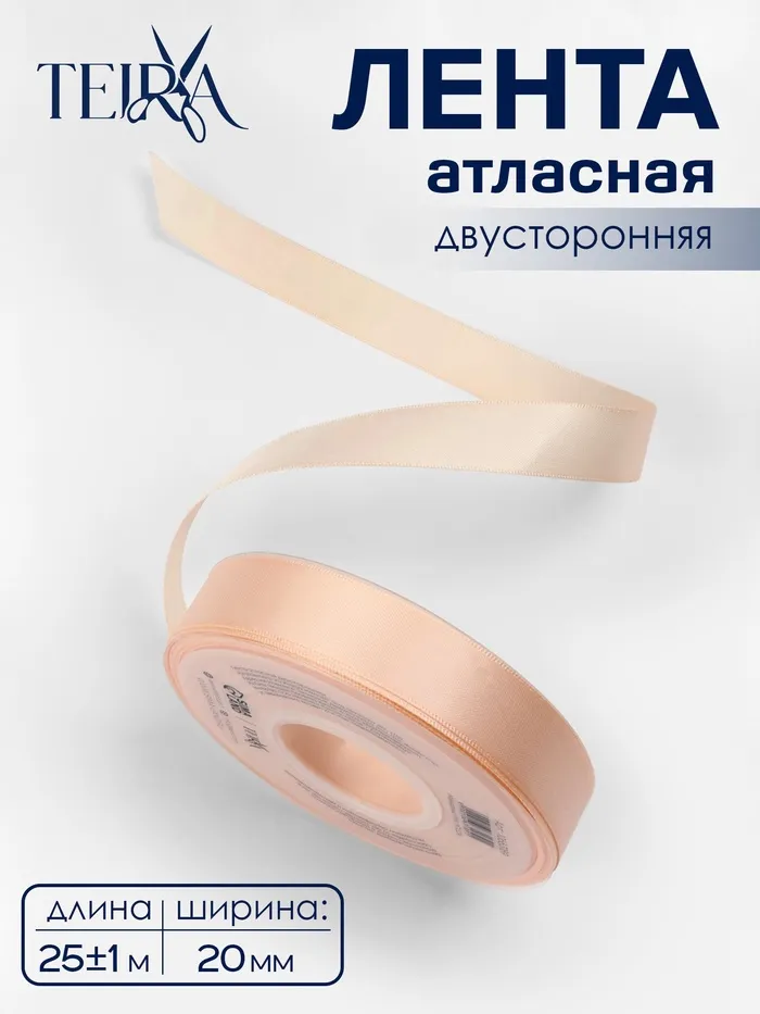 Лента атласная TEIRA, двухсторонняя, 20 мм, 25±1 м, светло-бежевая №112 — Характеристики