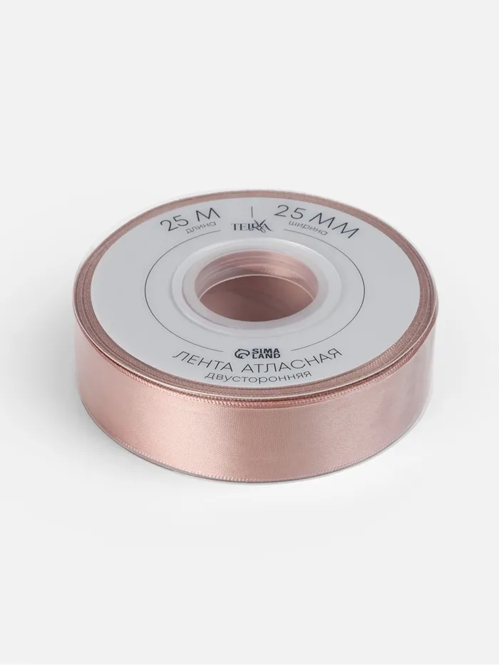Лента атласная TEIRA, двухсторонняя, 25 мм, 25±1 м, бежевая — Характеристики