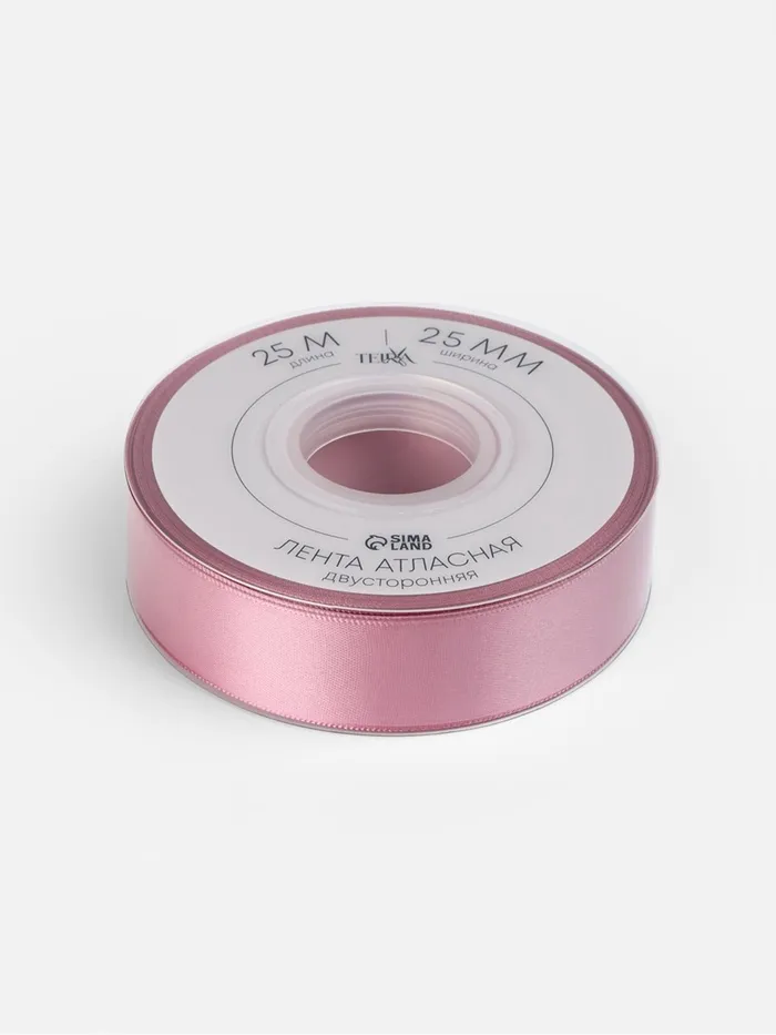 Лента атласная TEIRA, двухсторонняя, 25 мм, 25±1 м, розовая №165 — Характеристики