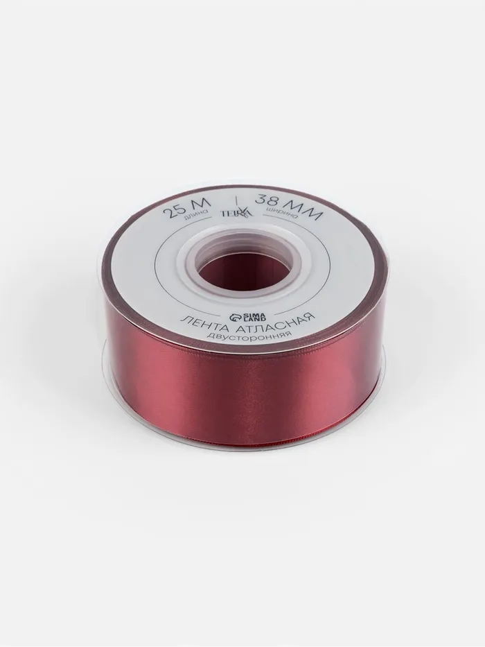 Лента атласная TEIRA, двухсторонняя, 38 мм, 25±1 м, бордовая №0789 — Характеристики