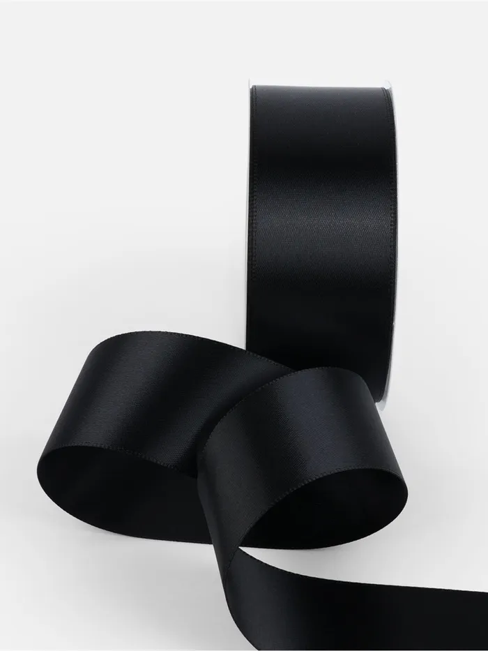 Лента атласная TEIRA, двухсторонняя, 38 мм, 25±1 м, чёрная №0030