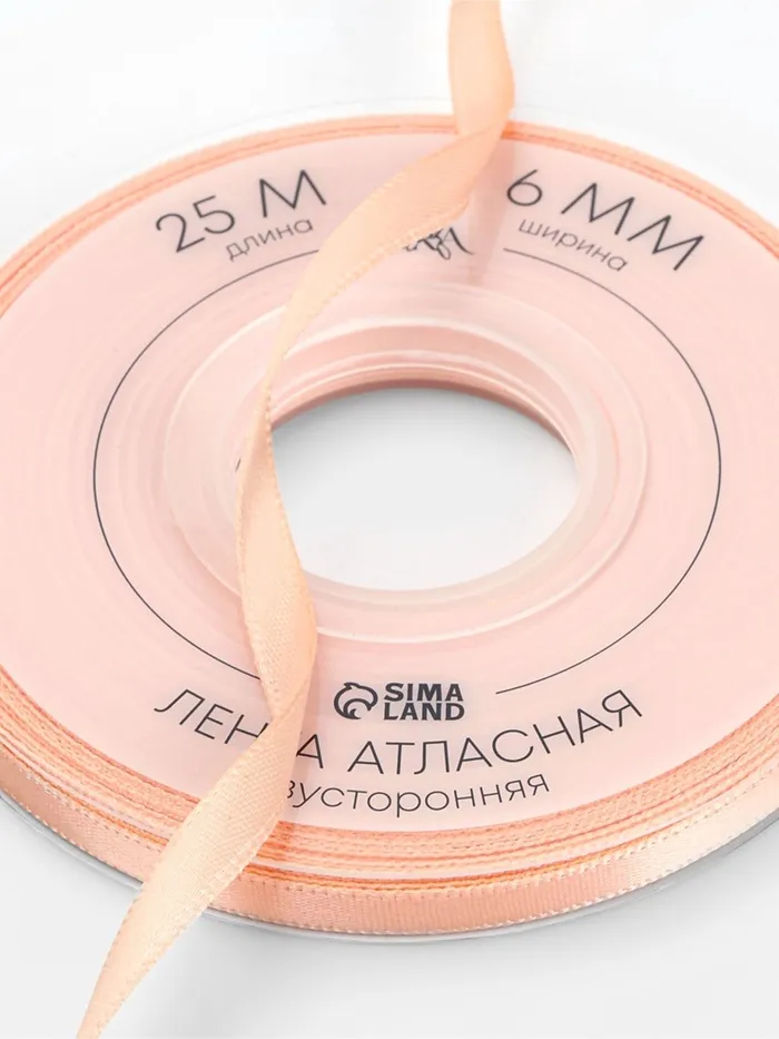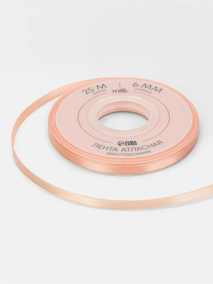 Лента атласная TEIRA, двухсторонняя, 6 мм, 25±1 м, бежевая №0714 — Характеристики