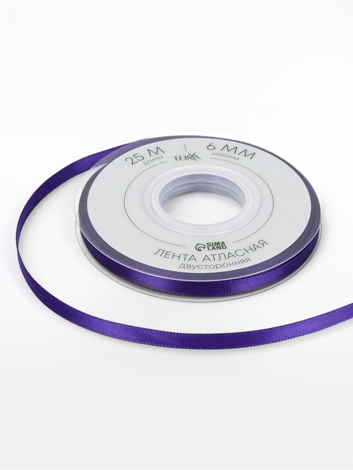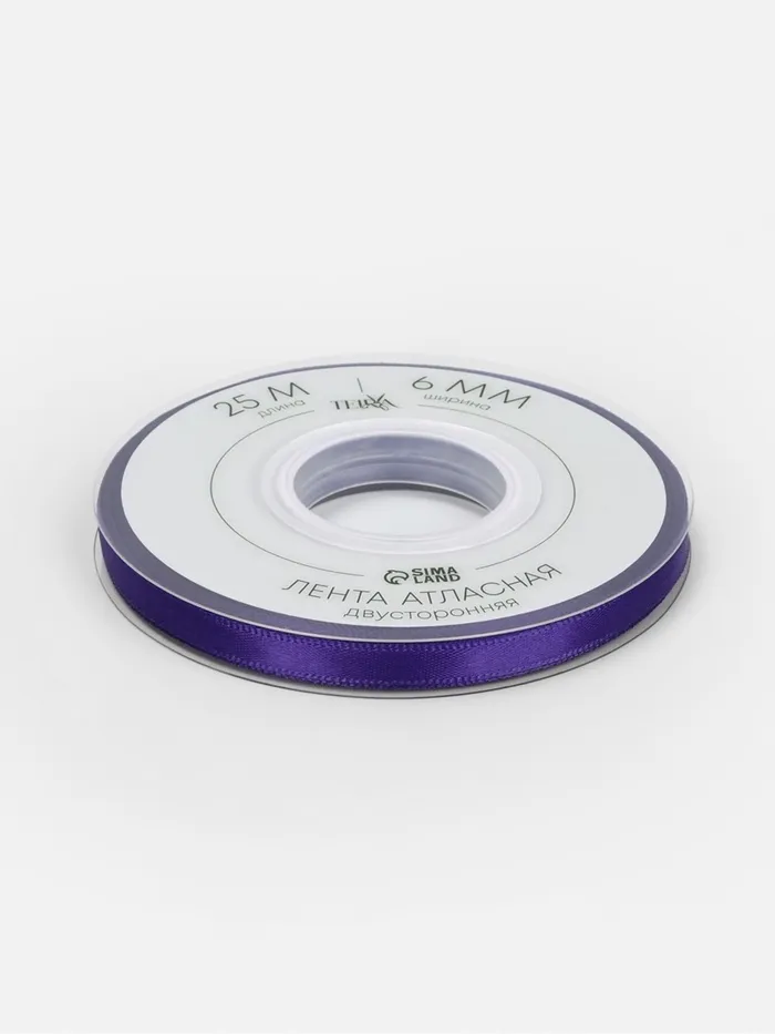 Лента атласная TEIRA, двухсторонняя, 6 мм, 25±1 м, фиолетовая №0470 — Характеристики
